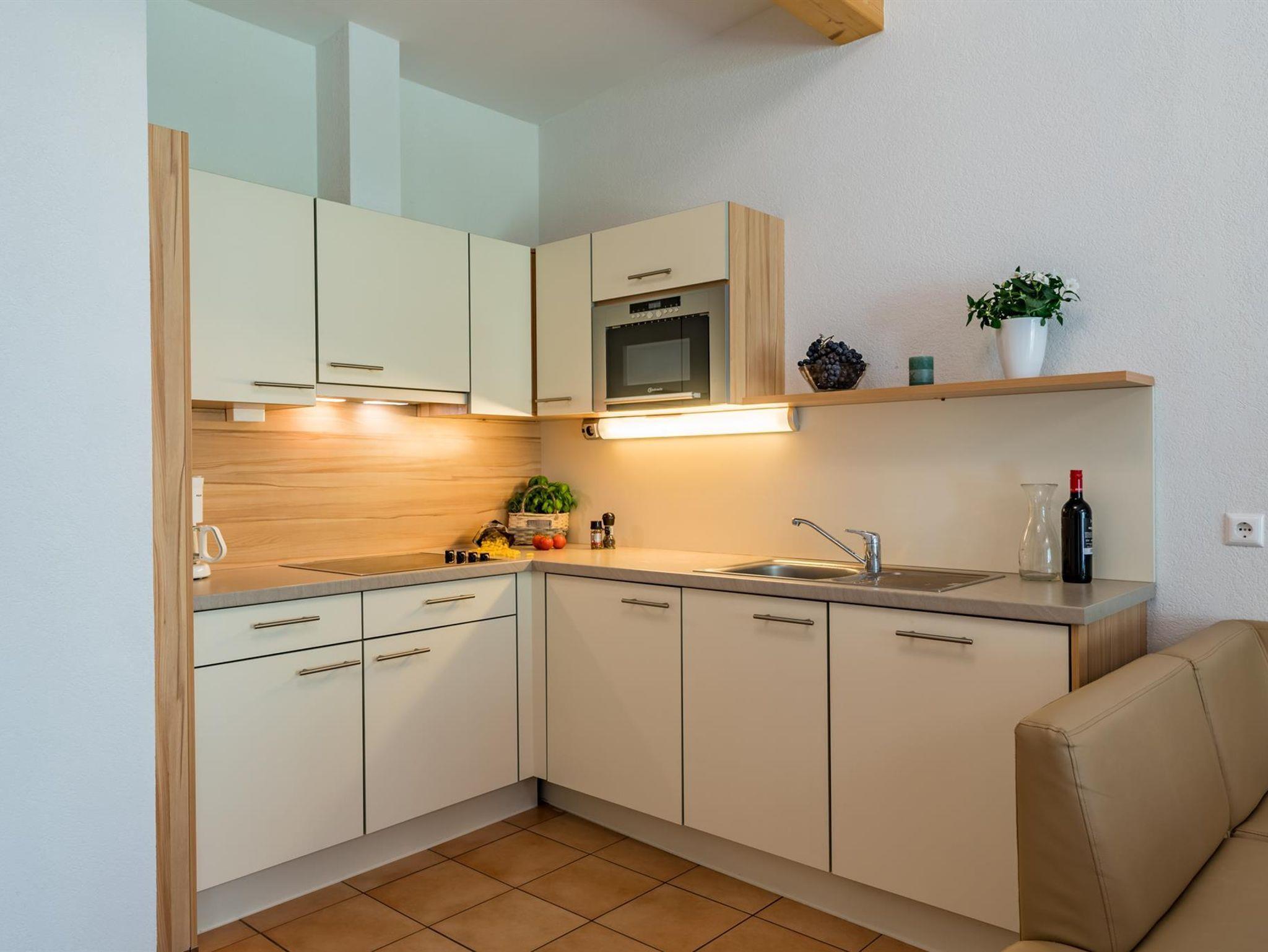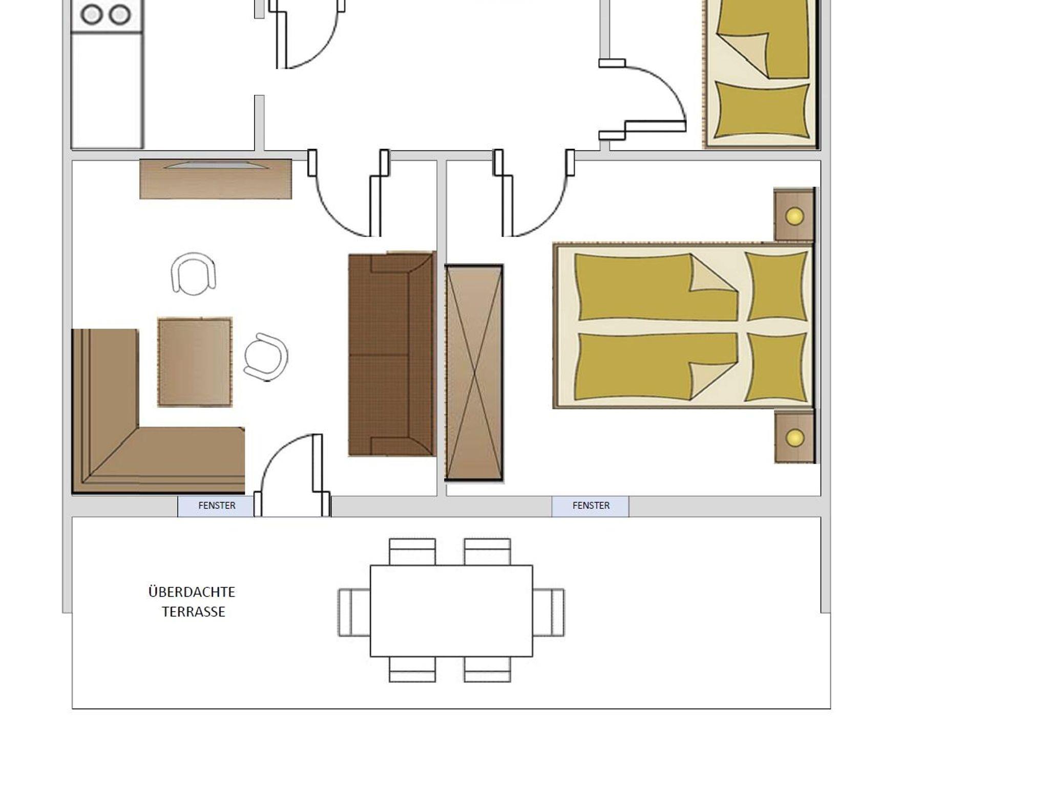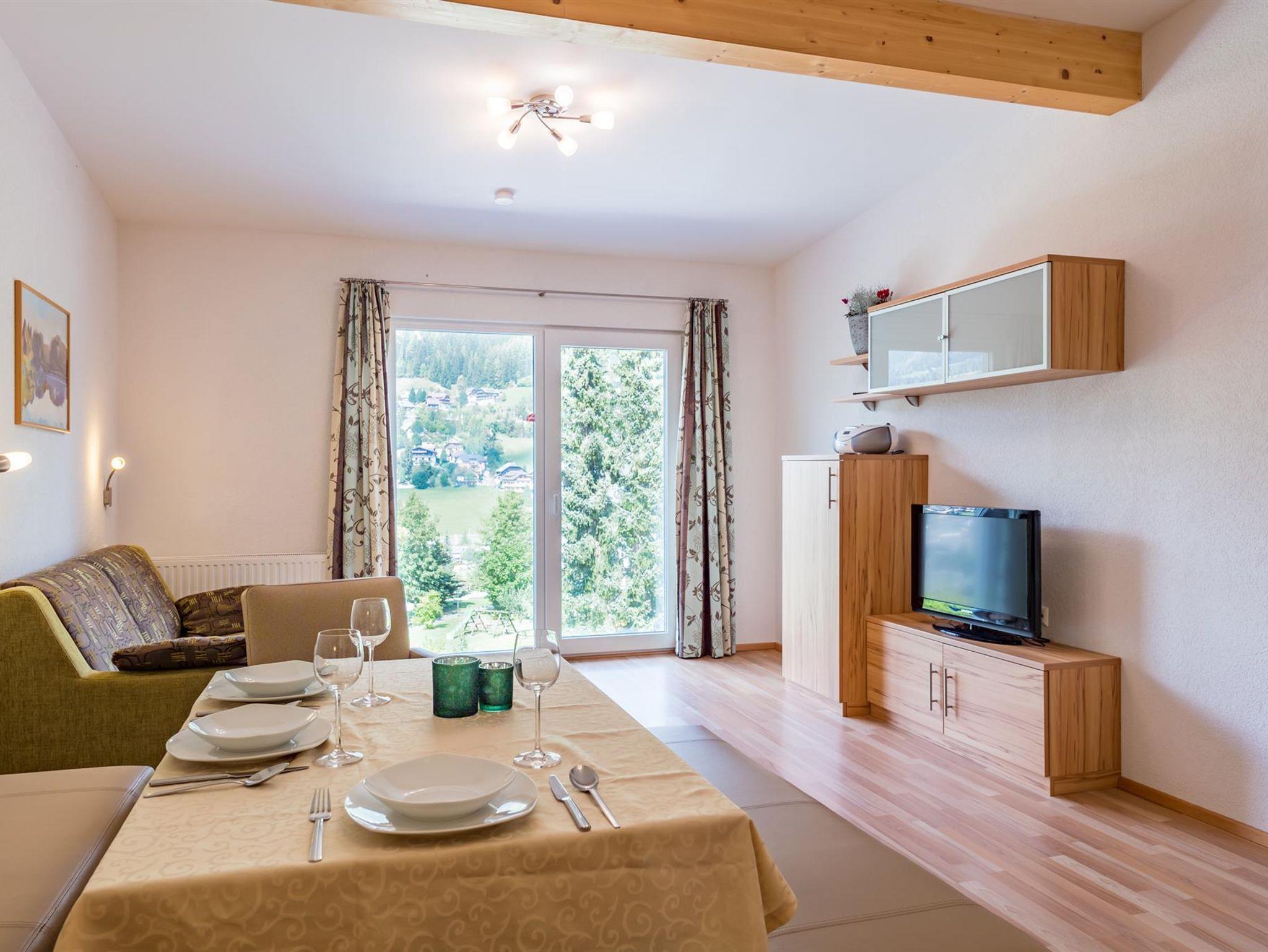 Das Apartment gliedert sich in folgende Räume: Windfang, Vorzimmer, Bad inklusive WC, Doppelbettschlafzimmer, Schlafzimmer mit einem Stockbett, großem Wohnzimmer mit einem ausziehbarem Sofa, Küche, Skistall und einer eigenen überdachten Terrasse mit Gartenmöbel. In der komplett ausgestatteten Küche befinden sich ein Geschirrspüler, eine Kaffemaschine, ein Toaster sowie eine Mikrowelle. Weiteres stehen Ihnen in jeder Wohnung Kabel TV und Radio zur Verfügung. Weiters können wir Ihnen in jedem Apartment WLAN zur Verfügung stellen.