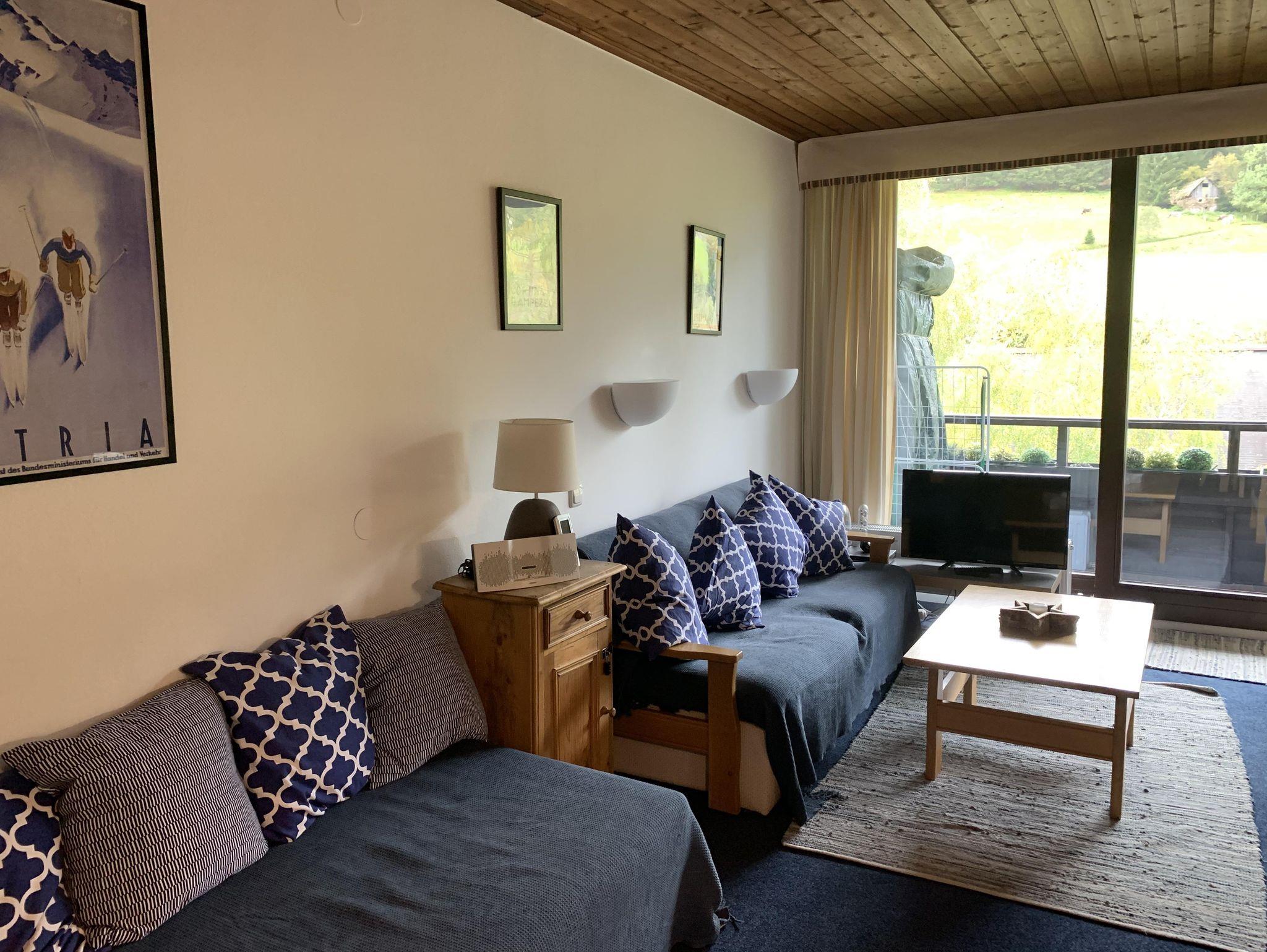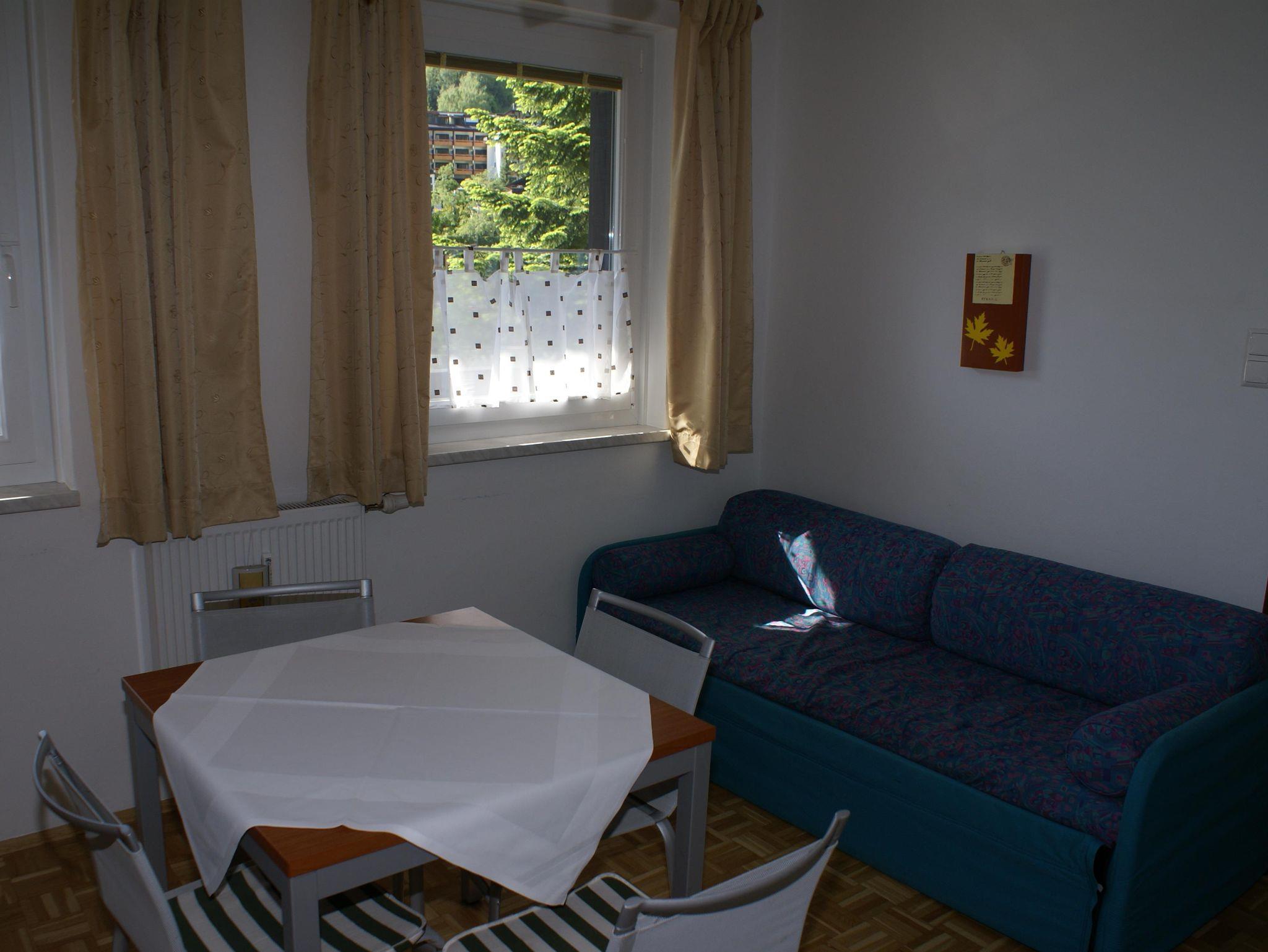 Zwei-Zimmer-Appartement für 2-3 Personen ca. 38 m2, Wohnschlafraum mit Sitzecke-Couchbett, Essplatz, Kochnische, kleiner Schlafraum mit 2 Einzelbetten, Bad/ WC, Balkon