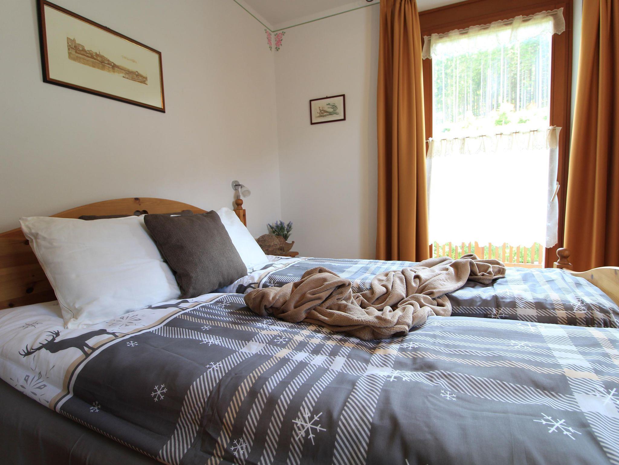 Bequeme Ferienwohnung für 4 bis 6 Gäste einen Steinwurf von der Maibrunn Skipiste, erreichbar zu Fuss. Ganz hinter dem Haus grüne Wiesen mit vielen Wandermöglichkeiten. Im 1. Stock mit Aufzug. Zwei doppelte Schlafzimmer, zwei Bäder, geräumiges Wohnzimmer mit doppelter Schlafcouch, Küche, zwei Balkone, beide mit Aussicht, kleiner Skiraum und Parkplatz in der Garage.