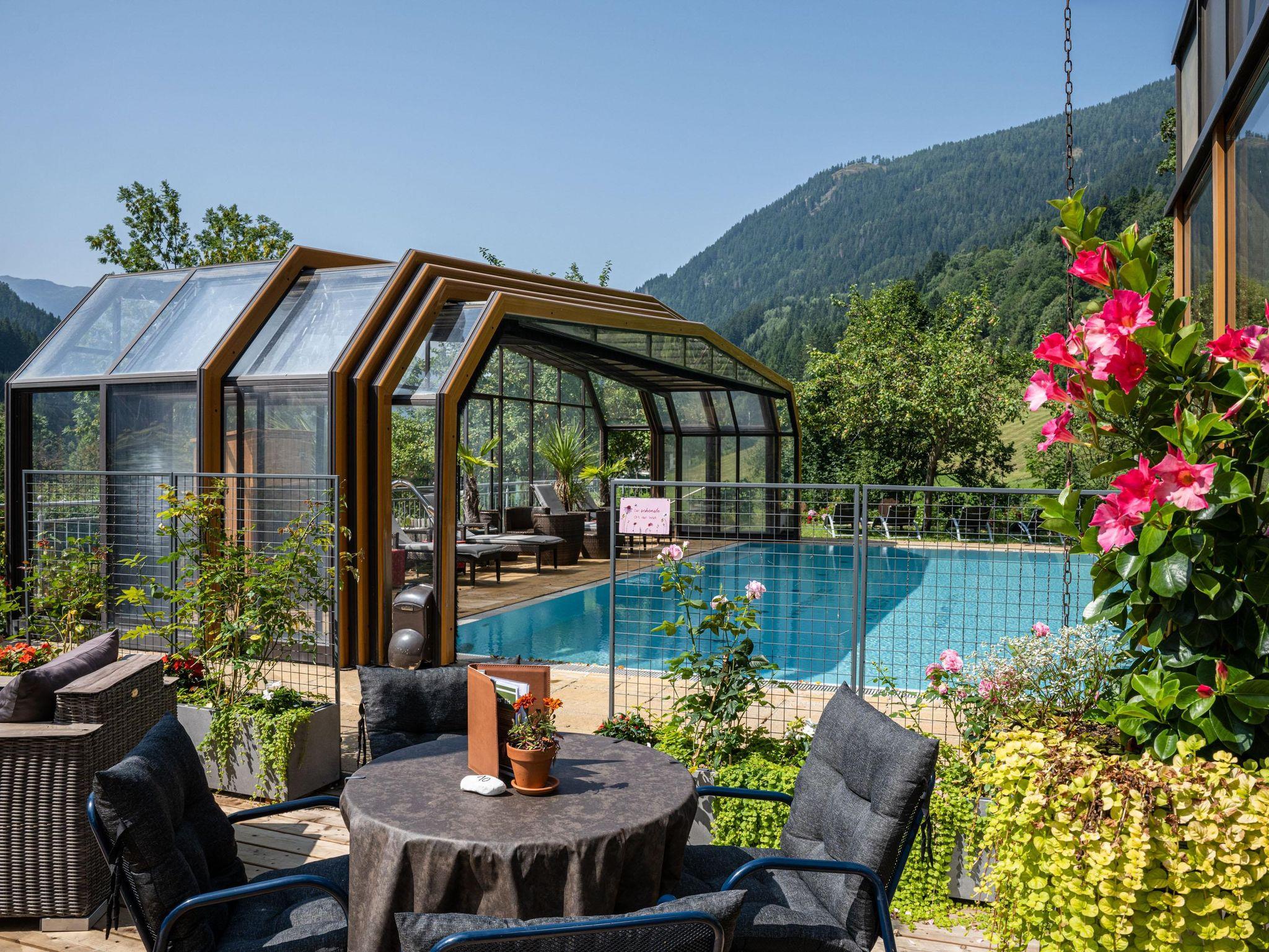 Willkommen im Hotel Almrausch mit der 500 Quadratmeter großen Wellnessoase auf zwei Ebenen. Freuen Sie sich auf jede Menge Relaxen, Energietanken und Kraftholen mit überdachtem, ganzjährig nutzbarem Pool (Sommer 29°C, Herbst/Winter 31°C), einer Saunaoase, verschiedenen Ruheräumen und bei wohltuenden Massagen. Sommerurlaub in Bad Kleinkirchheim