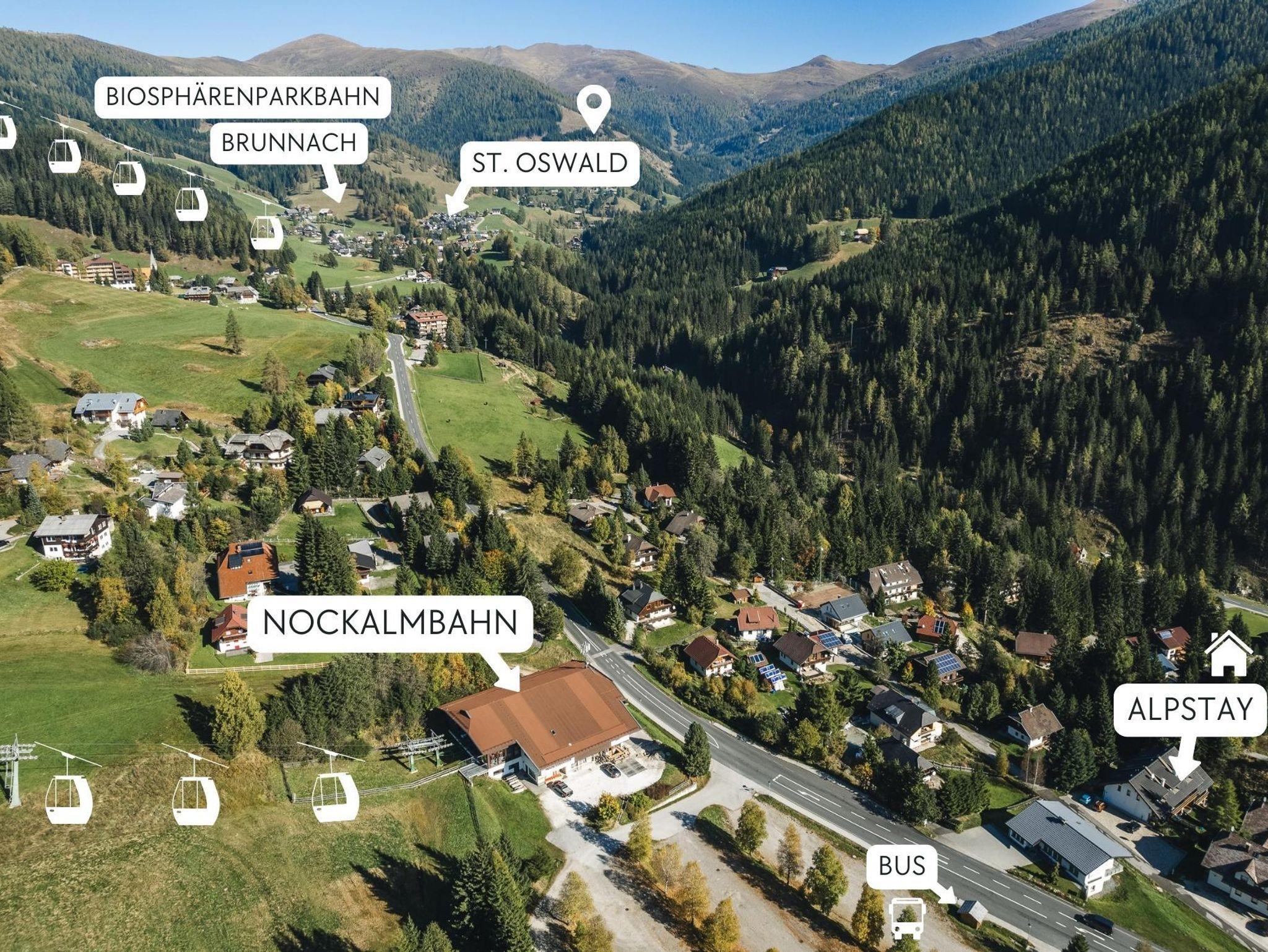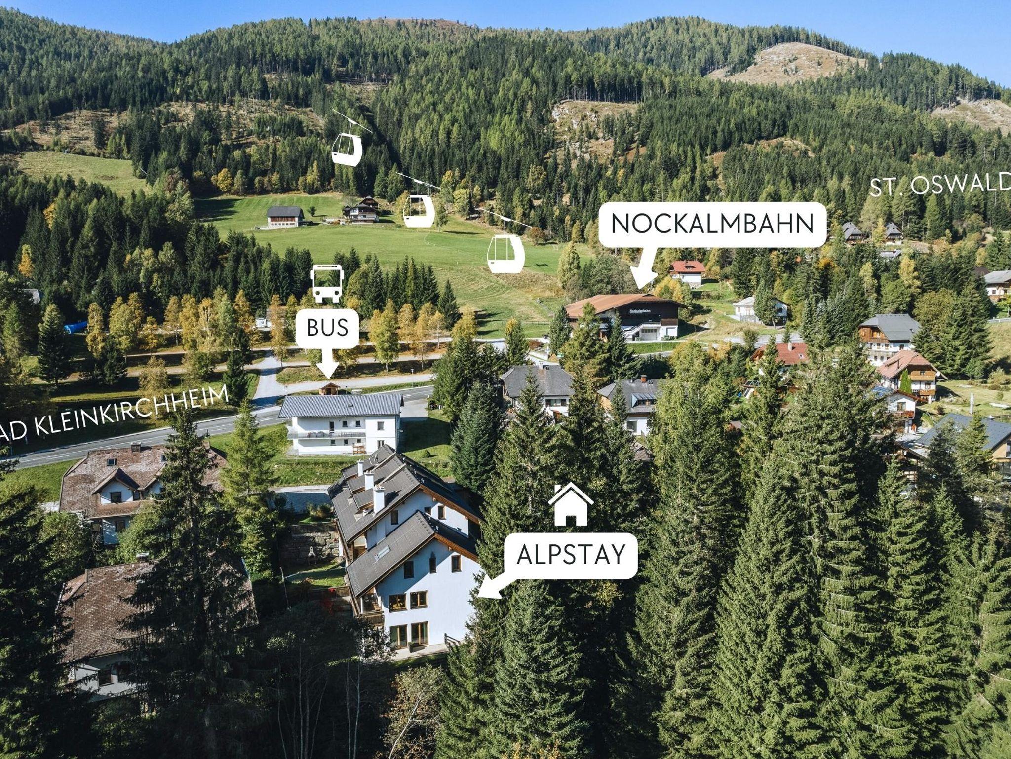 Unsere Apartments befinden sich auf etwa 1.250 m Seehöhe zwischen Bad Kleinkirchheim (ca. 5 Fahrminuten) und St. Oswald (2 Fahrminuten) - inmitten des UNESCO Biosphärenpark Kärntner Nockberge, einem wahren Naturparadies! Natur-Aktiv Urlaubern bieten die Apartments die perfekte Ausgangslage um die umliegenden Winter-Wanderwege und Pisten ausgiebig zu erkunden. Die Nockalmbahn befindet sich übrigens genau gegenüber - Ski-In & Ski-Out quasi. Nach einigen rasanten Abfahrten auf der Piste könnt ihr auch dann am besten in der ein oder anderen urigen Hütte mit traditionellen regionalen Schmankerln wir zum Beispiel den Kärntner Kasnudln stärken.