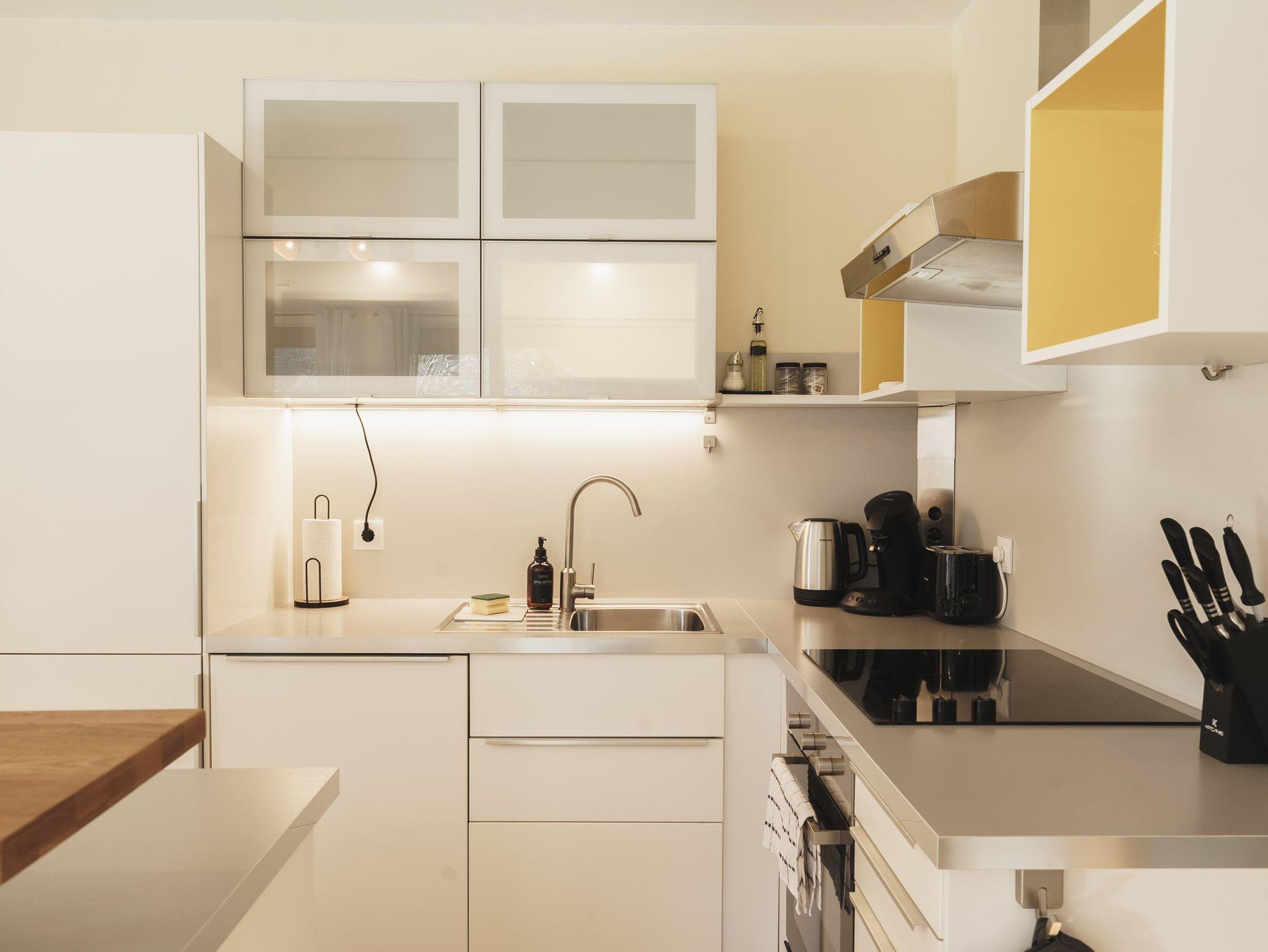Die voll ausgestattete Küche bietet euch die Möglichkeit, eure Lieblingsgerichte selbst zuzubereiten. Eine Küchengrundausstattung, wie Geschirrspülmittel & Tabs, Salz, Pfeffer, Öl, Zucker, ein paar Teebeutel & Kaffee-Pads für die Kaffeemaschine (Philips Senseo) stellen wir euch gerne kostenlos zur Verfügung!