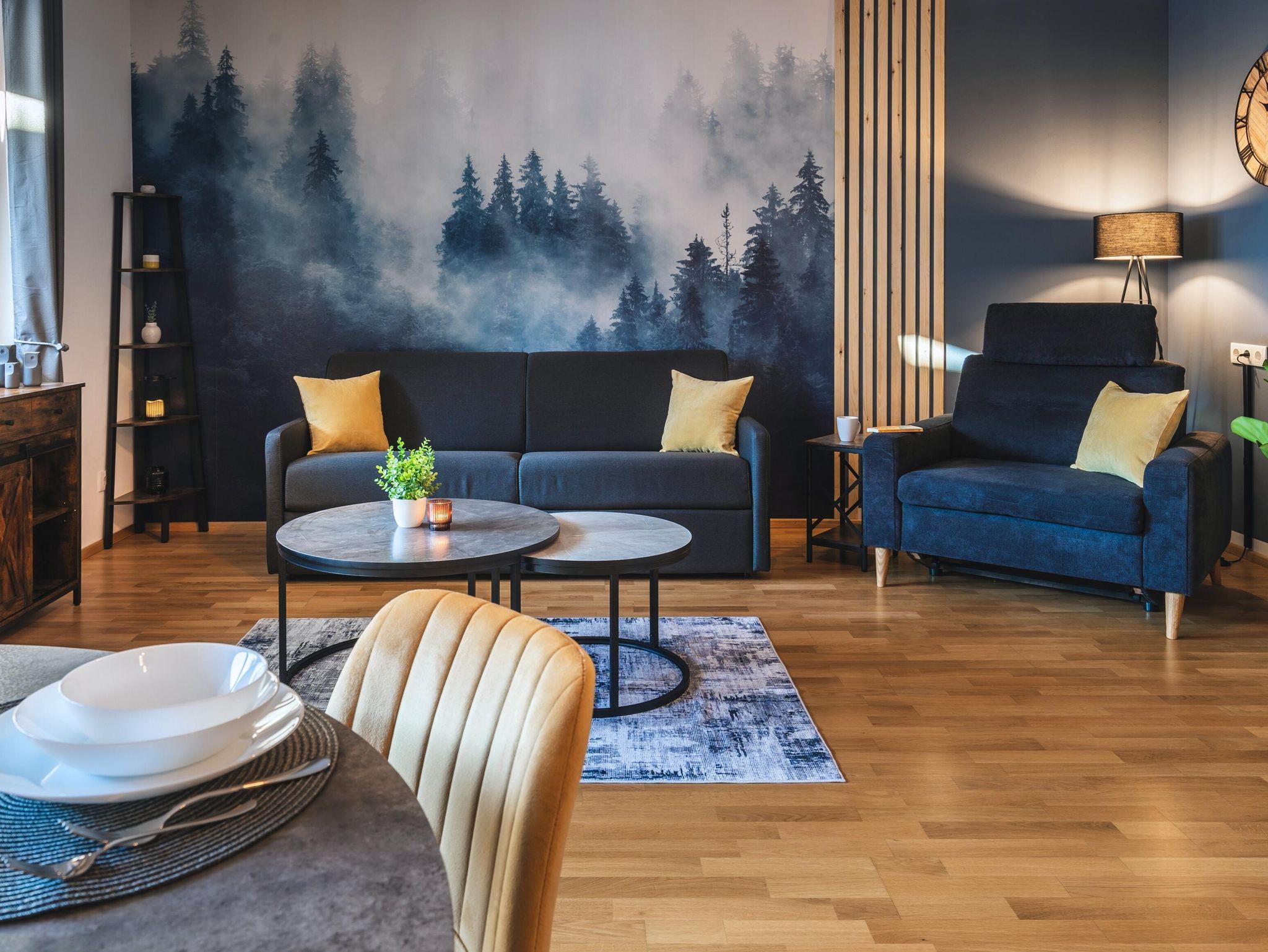 • Ein bequemes Schlafsofa im Wohnzimmer für weitere 1-2 Personen (140x200cm)