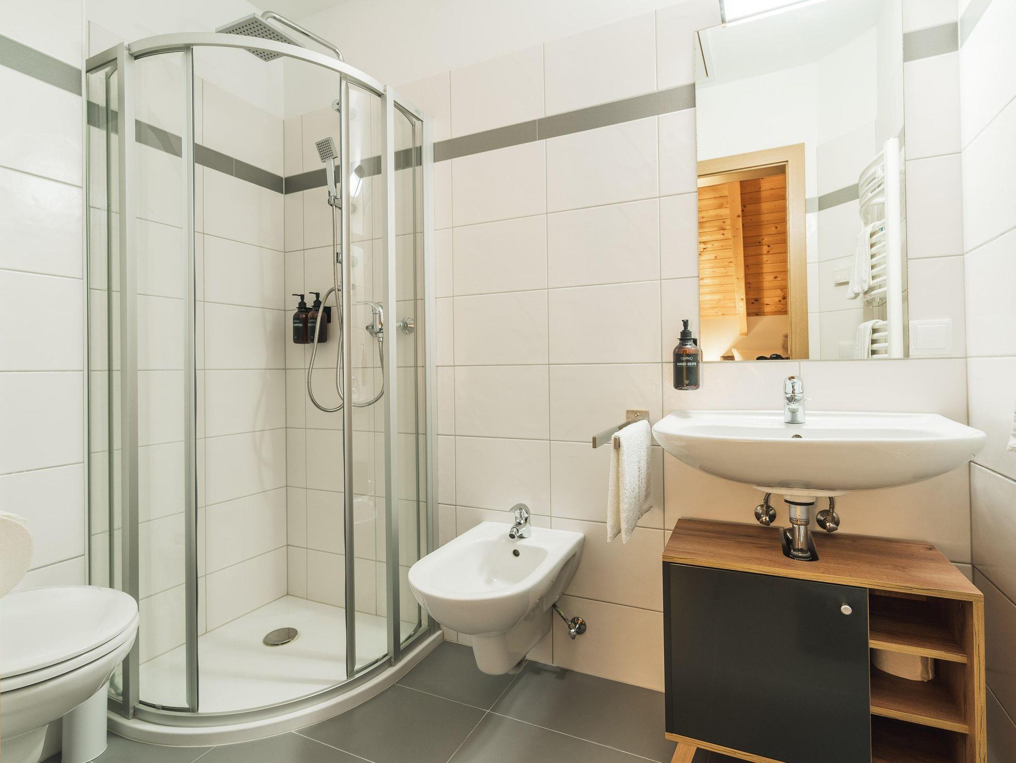 Es besitzt 3 separate Schlafzimmer im Obergeschoß und bietet somit genug Platz für bis zu 6 Personen. Des weiteren gibt es zwei Badezimmer mit Dusche, ein separates WC sowie einen herrlichen großen Südbalkon, an dem ihr den ganzen Nachmittag die letzten Sonnenstrahlen genießen könnt. Hier könnt ihr euren ereignisreichen Tag am Berg perfekt ausklingen lassen.