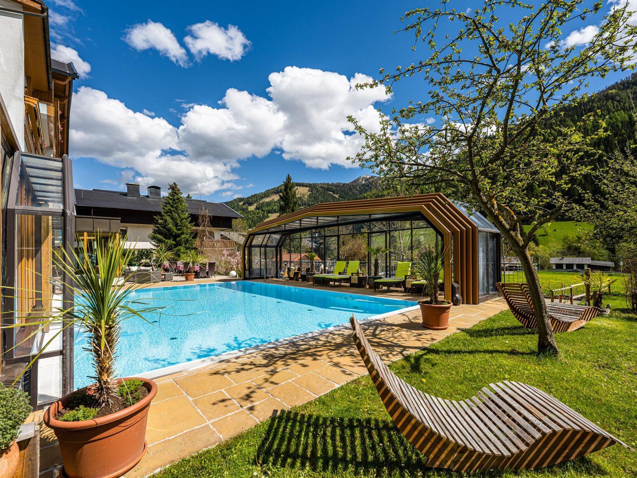 Willkommen im Hotel Almrausch mit der 500 Quadratmeter großen Wellnessoase auf zwei Ebenen. Freuen Sie sich auf jede Menge Relaxen, Energietanken und Kraftholen mit überdachtem, ganzjährig nutzbarem Pool (Sommer 29°C, Herbst/Winter 31°C), einer Saunaoase, verschiedenen Ruheräumen und bei wohltuenden Massagen. Sommerurlaub in Bad Kleinkirchheim