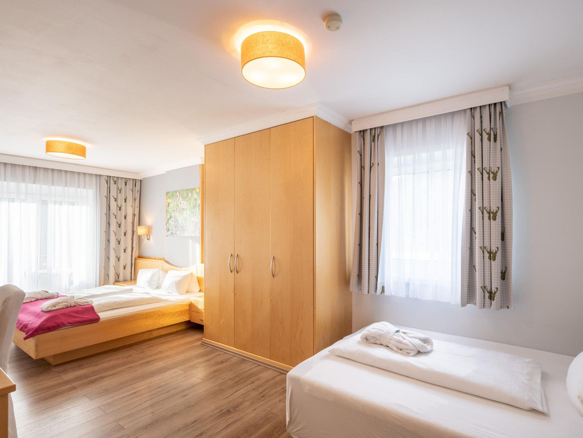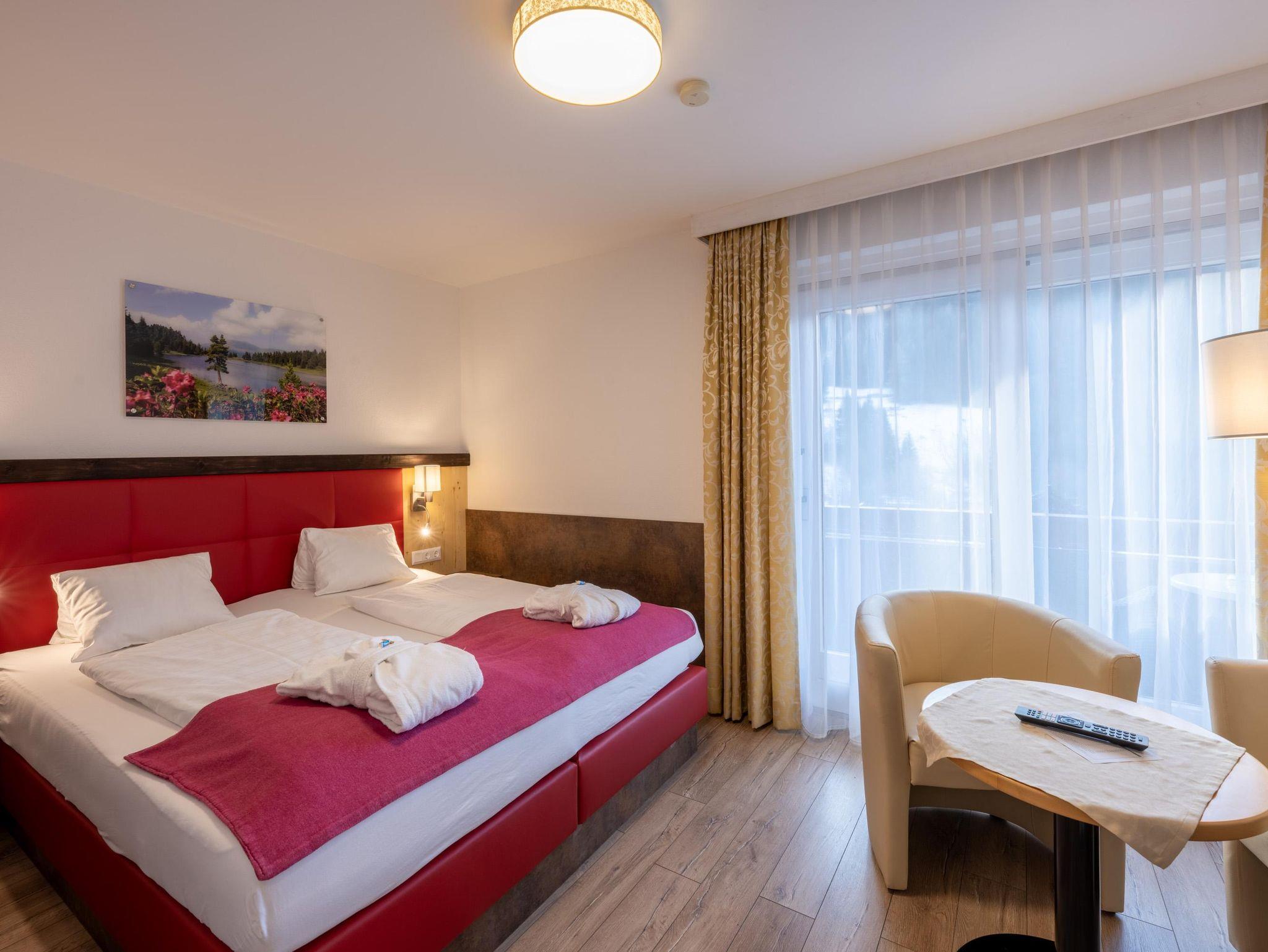 Doppelzimmer Zirbe-Birke Ca. 22 m² (für 1 bis 2 Personen), Ostbalkon oder Loggia, Gemütlicher Schlafraum und Wohnecke, Safe, Badezimmer mit Dusche und WC, Kosmetikspiegel, Föhn, Bademantel, Wellness-Korb, GRATIS WLAN