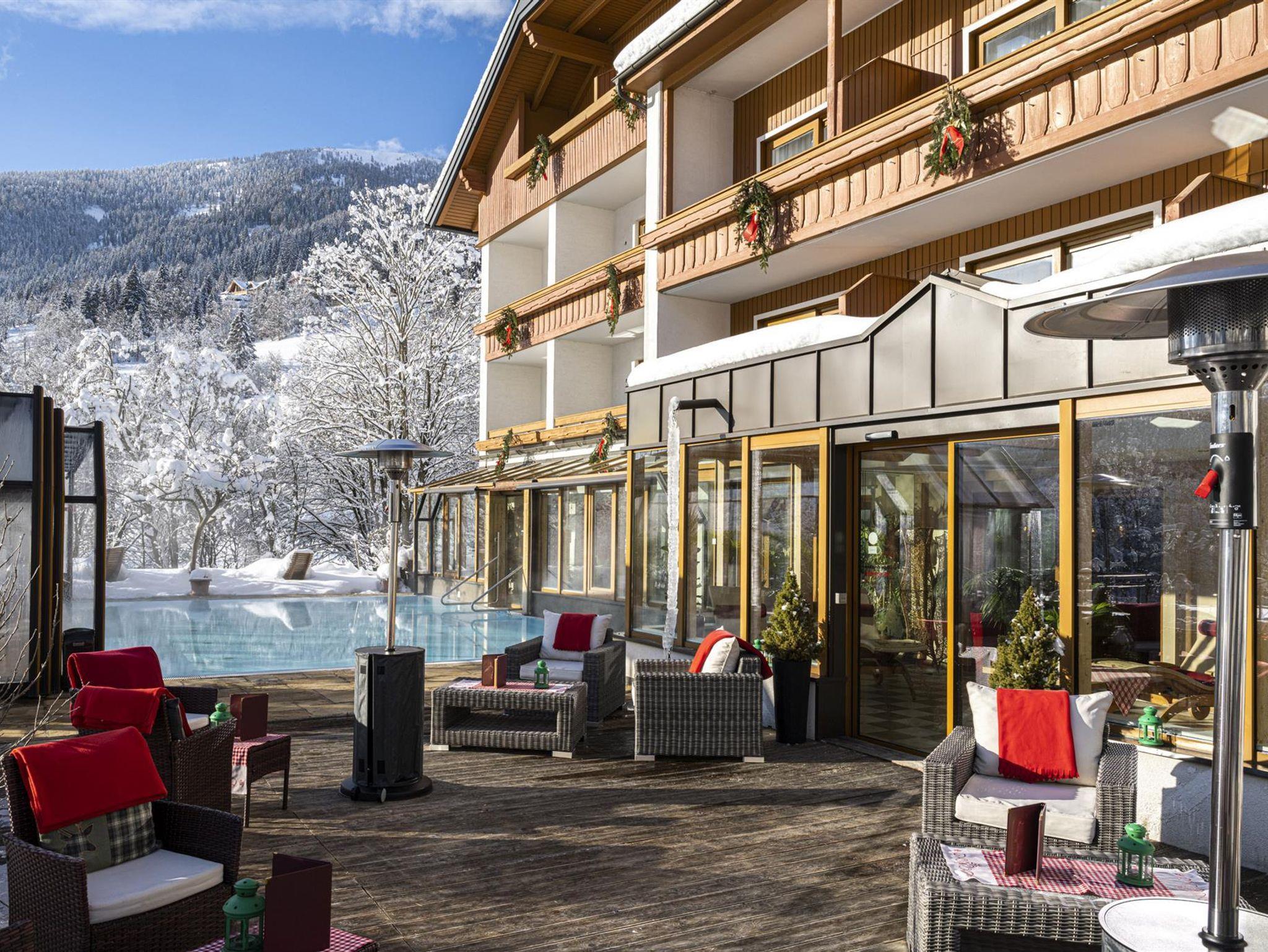 Winterurlaub in Kärnten in den Nockbergen, direkt an der Skipiste und mitten im vielfältigen Wintersportgebiet der Nockberge: Schöner können Winterferien in Österreich kaum sein! Entdecken Sie das Skigebiet Bad Kleinkirchheim direkt vom Hotel aus, freuen Sie sich auf aussichtsreiche Winterwanderungen und relaxen Sie ausgiebig in den nahen Thermen!