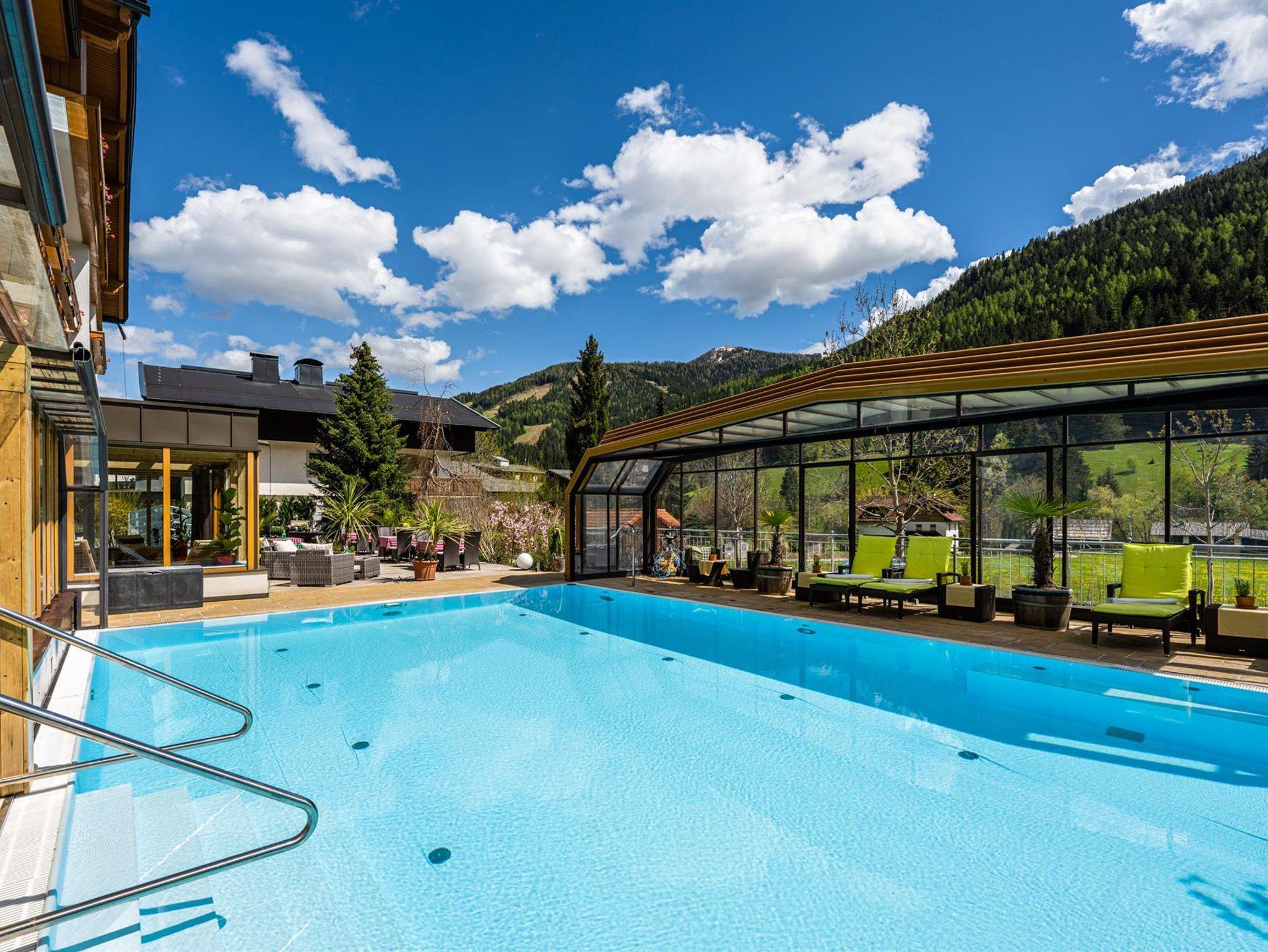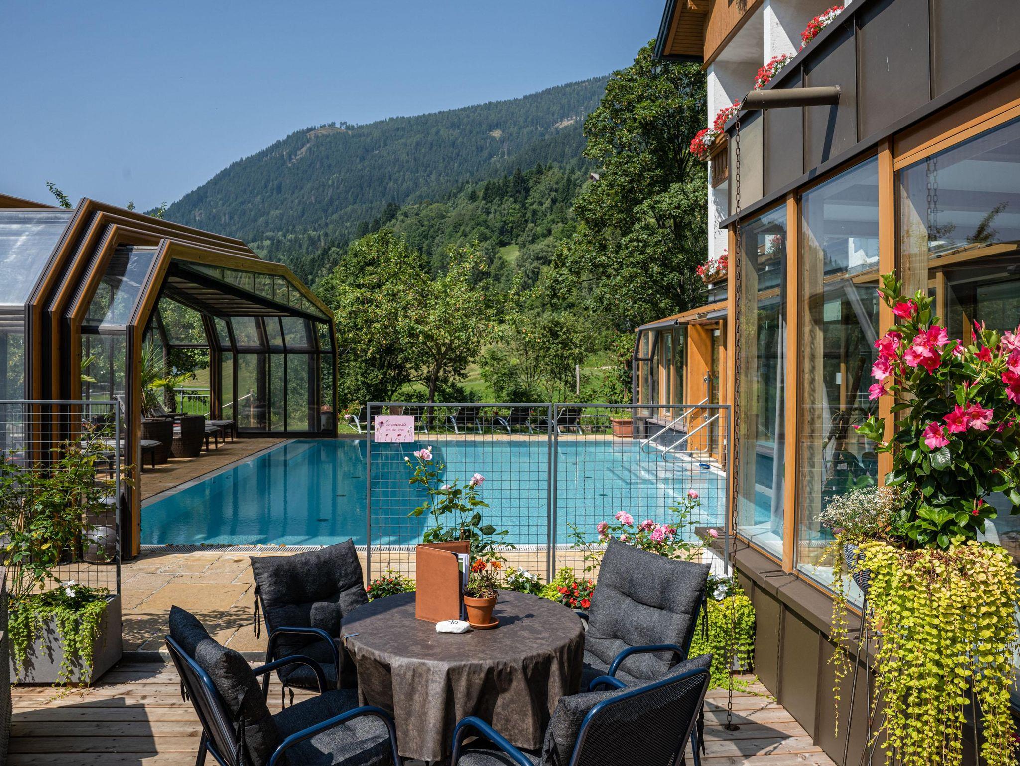 Willkommen im Hotel Almrausch mit der 500 Quadratmeter großen Wellnessoase auf zwei Ebenen. Freuen Sie sich auf jede Menge Relaxen, Energietanken und Kraftholen mit überdachtem, ganzjährig nutzbarem Pool (Sommer 29°C, Herbst/Winter 31°C), einer Saunaoase, verschiedenen Ruheräumen und bei wohltuenden Massagen. Sommerurlaub in Bad Kleinkirchheim