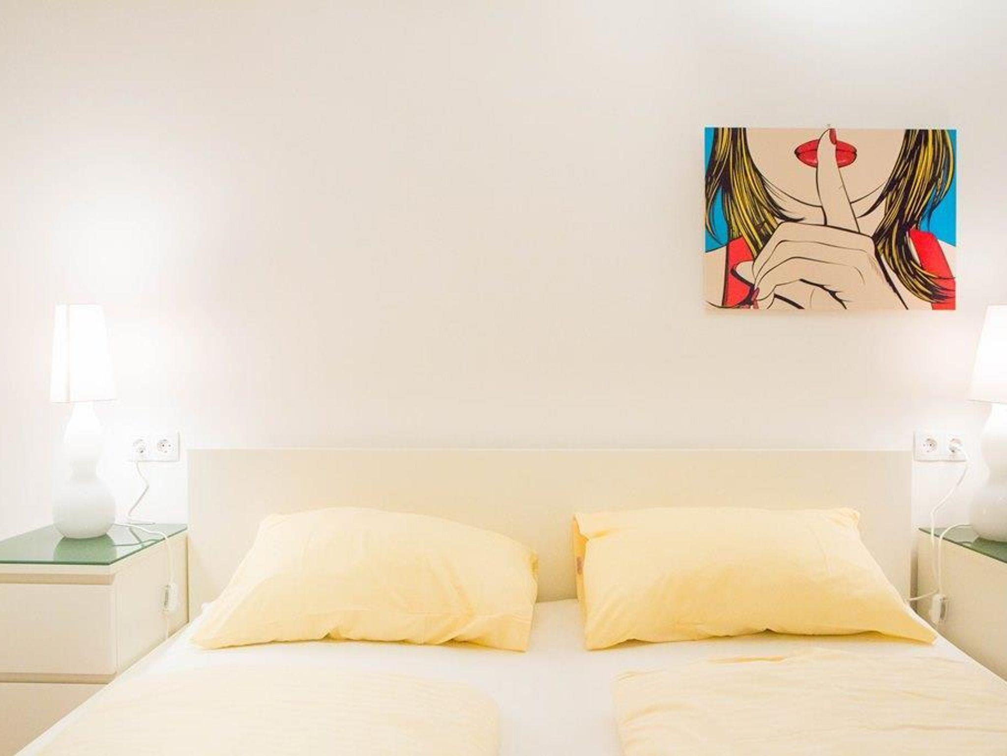 85m² große Wohnung für bis zu 8 Personen: 1 Doppelzimmer, 2 Doppelzimmer und 1 großes Zimmer - Wohnzimmer mit Schlafcouch. 2 Terrassen mit herrlicher Aussicht. 1 Terrasse mit Tisch und Stühlen für Frühstück/Mittagessen im Freien,