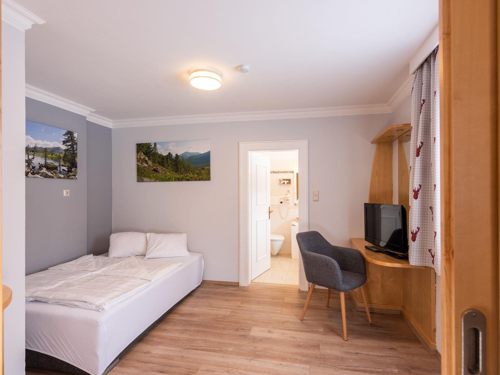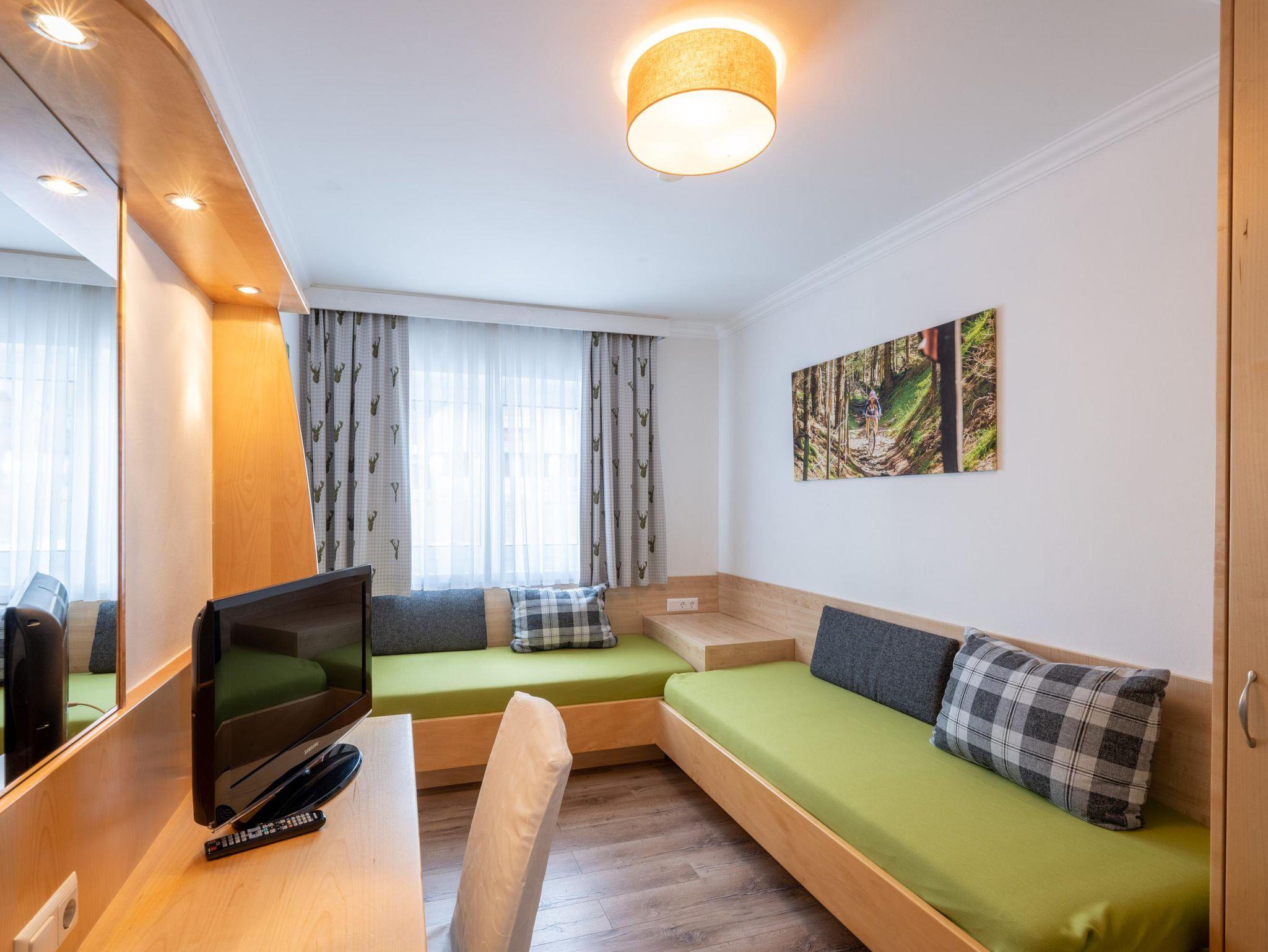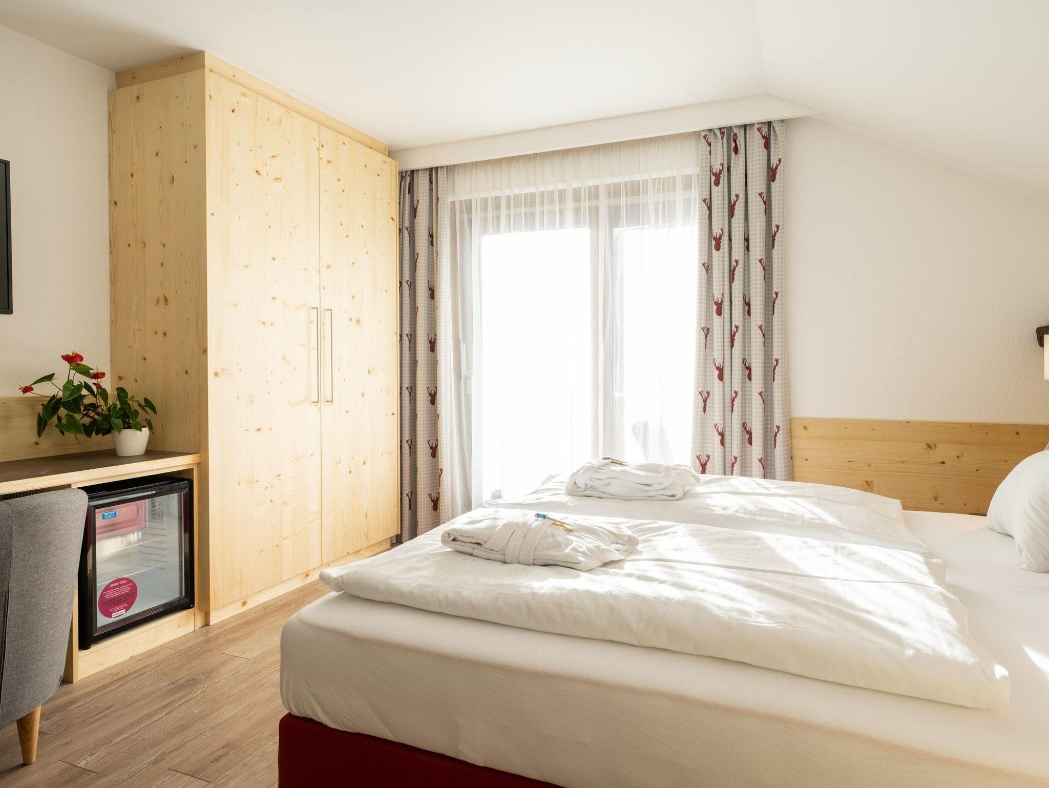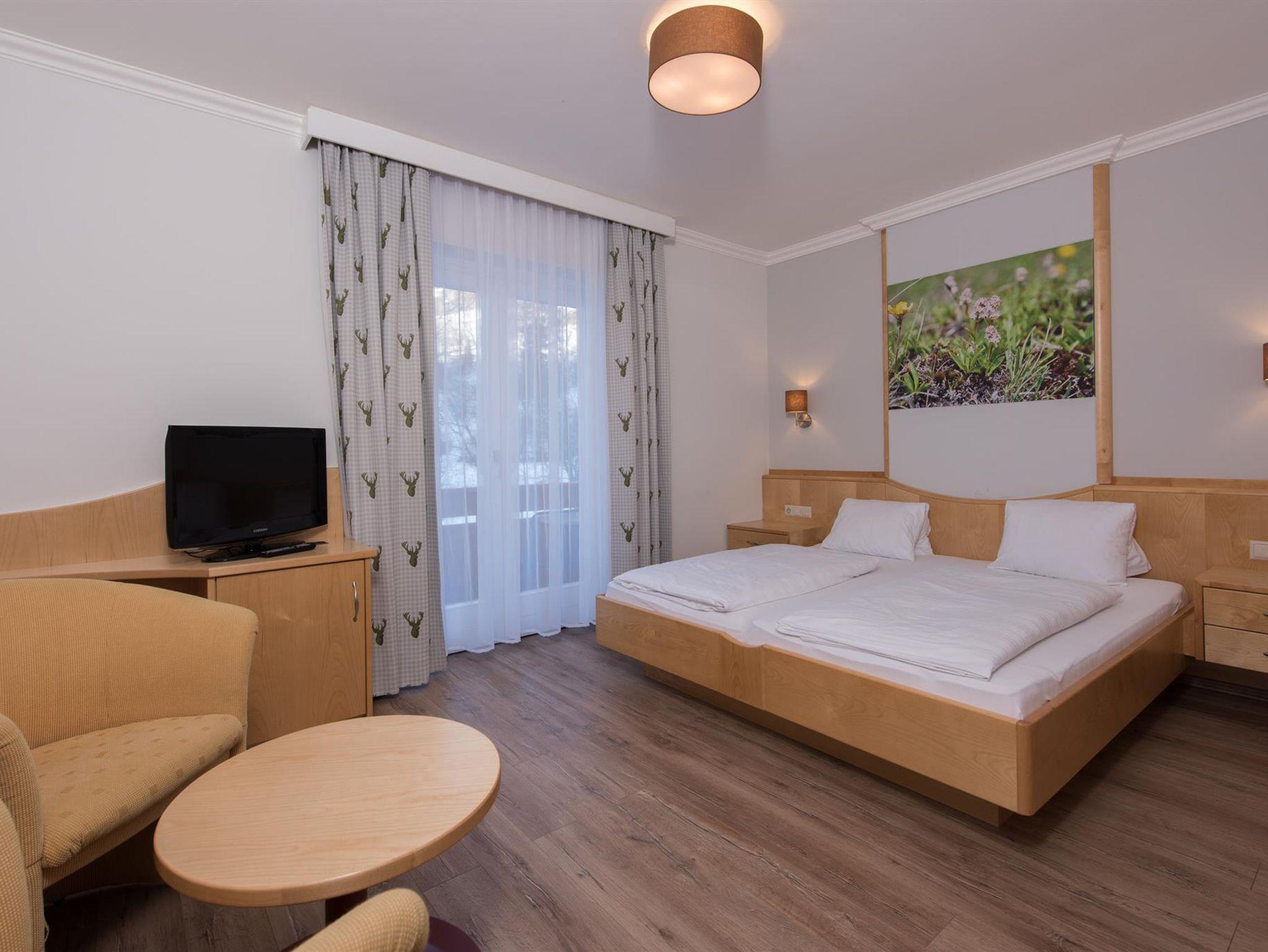 Junior Suite Sonnwiesen, Ca. 37 m² (für 2 bis 4 Personen) Gemütlicher Schlafraum und Wohnecke - abtrennbarer zweiter Schlafraum, 2 Kabel-TV´s, Safe, Badezimmer mit Badewanne und WC, Kosmetikspiegel, Föhn, Bademantel, Wellness-Korb, GRATIS WLAN