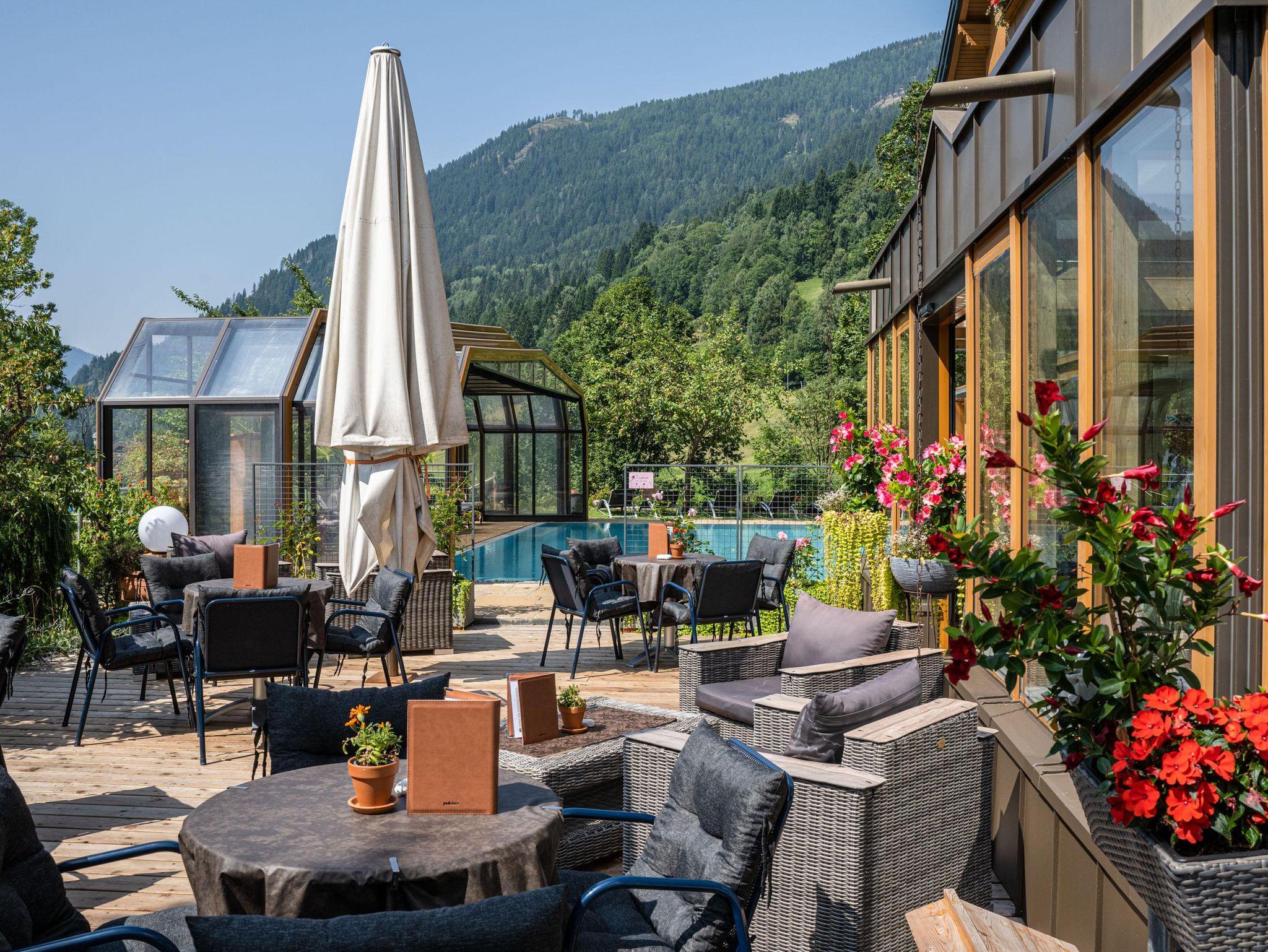 Willkommen im Hotel Almrausch mit der 500 Quadratmeter großen Wellnessoase auf zwei Ebenen. Freuen Sie sich auf jede Menge Relaxen, Energietanken und Kraftholen mit überdachtem, ganzjährig nutzbarem Pool (Sommer 29°C, Herbst/Winter 31°C), einer Saunaoase, verschiedenen Ruheräumen und bei wohltuenden Massagen. Sommerurlaub in Bad Kleinkirchheim