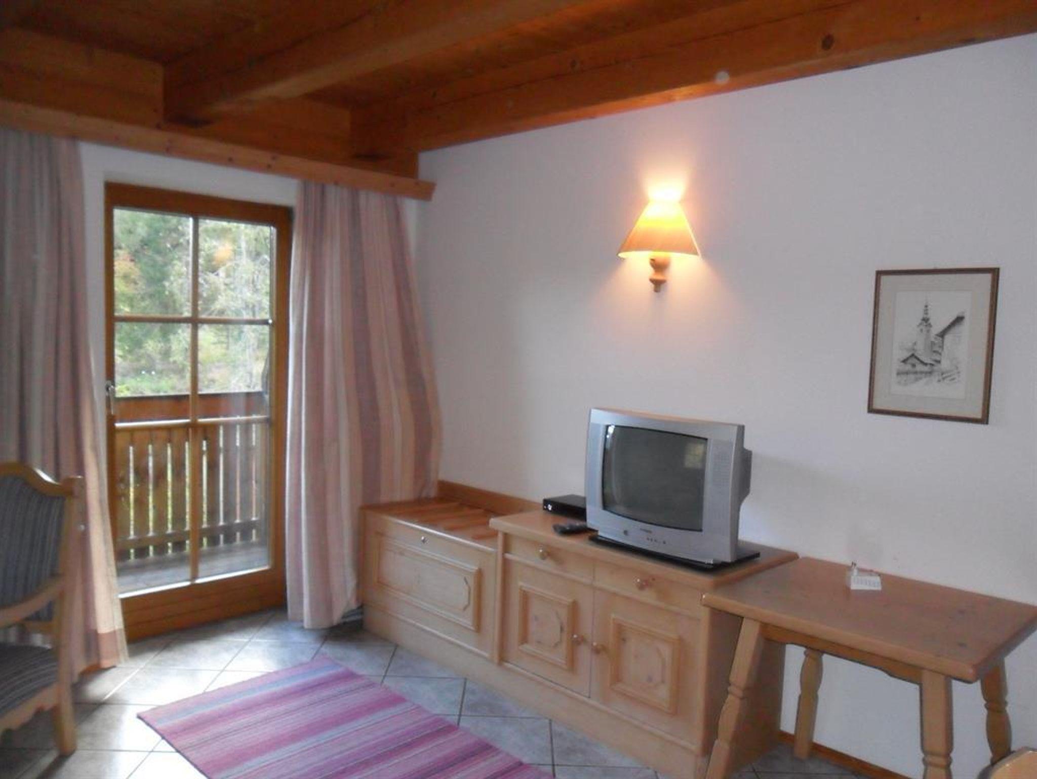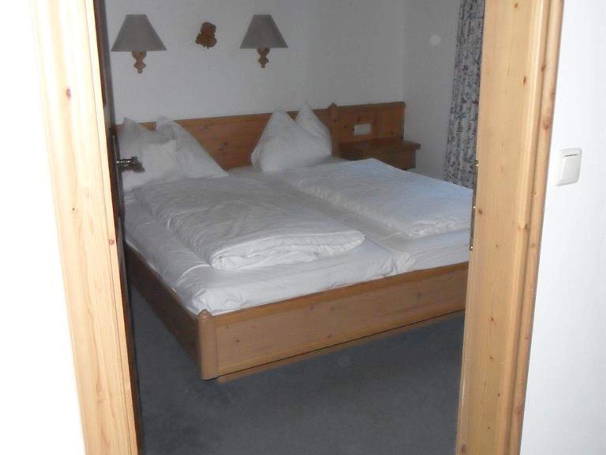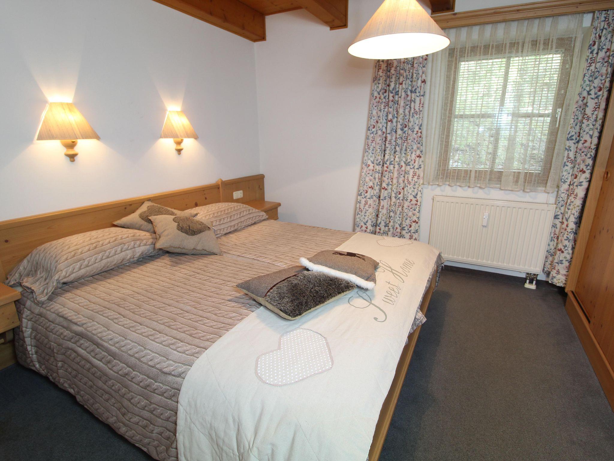 Das Appartement präsentiert sich in einem rustikalen Design mit Massivholzmöbeln mit 2 Schlafzimmern: ein Zimmer mit Doppelbett und ein kleineres Zimmer mit 2 Einzelbetten. Im gemütlichen Wohn-Esszimmer befindet sich ein Schlafsofa für 1 Person. Die offene Küche ist mit einem Küchenblock, Kühlschrank mit kleinem Gefrierfach, Geschirrspüler, Mikrowelle, Toaster und Elektroherd mit zwei Kochplatten ausgestattet.