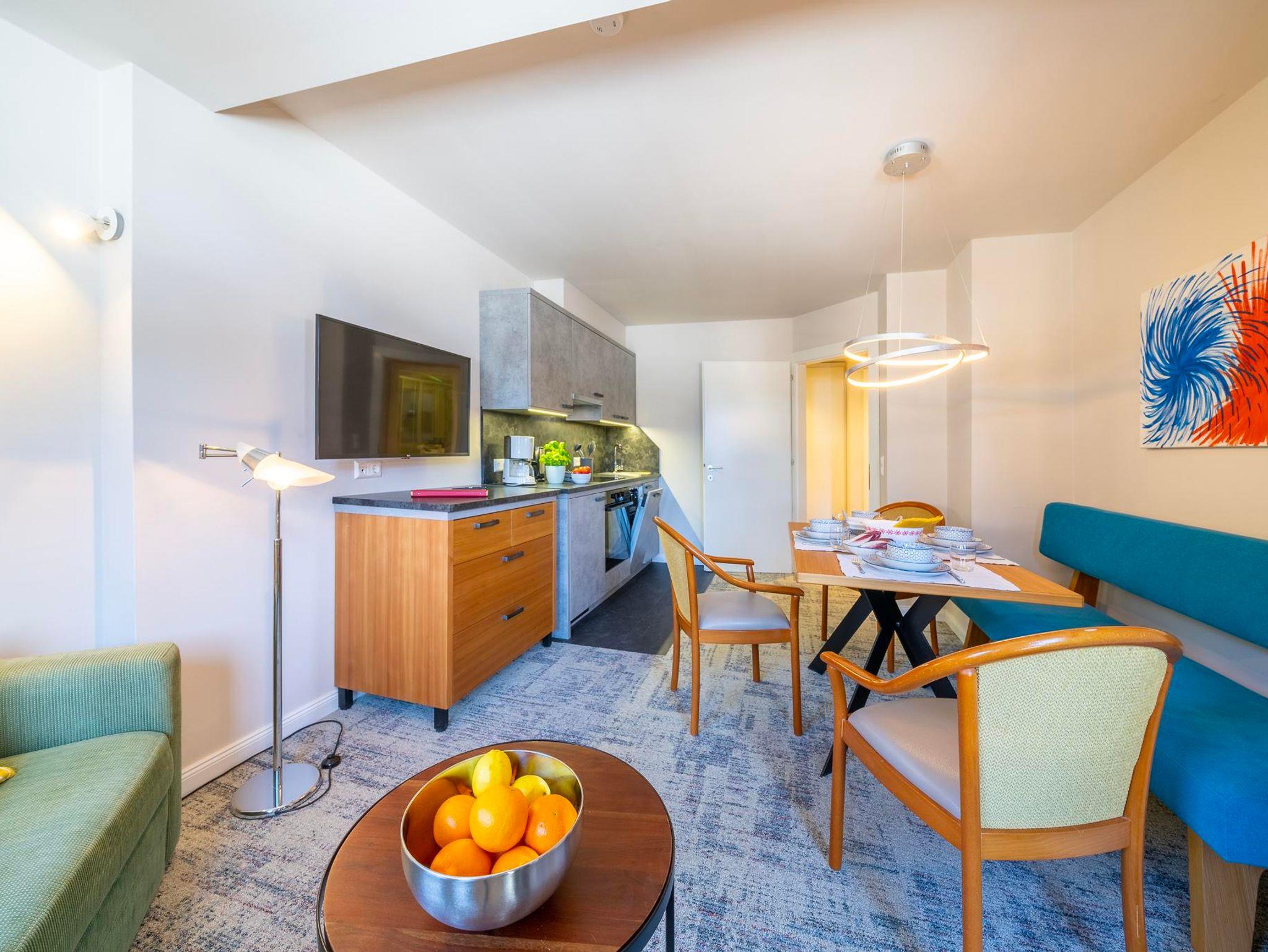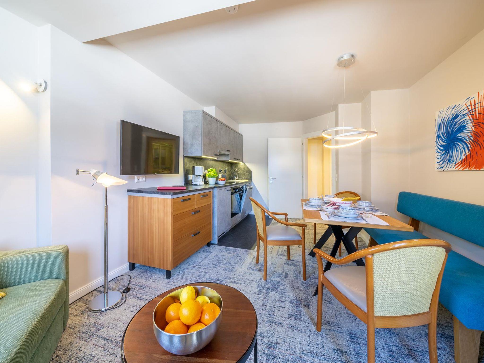 mit zwei getrennten Räumen, ein Wohnzimmer mit Schlafcouch und ein Schlafzimmer, Dusche, WC, Sat-TV, Radio, Telefon, Fön, Balkon, Kochnische mit Essecke STORNO: bis 1 Monat vor Anreise GRATIS 1 Monat bis 1 Woche vor Anreise 70% vom Buchungspreis letzte Woche vor Anreise 90% vom Buchungspreis