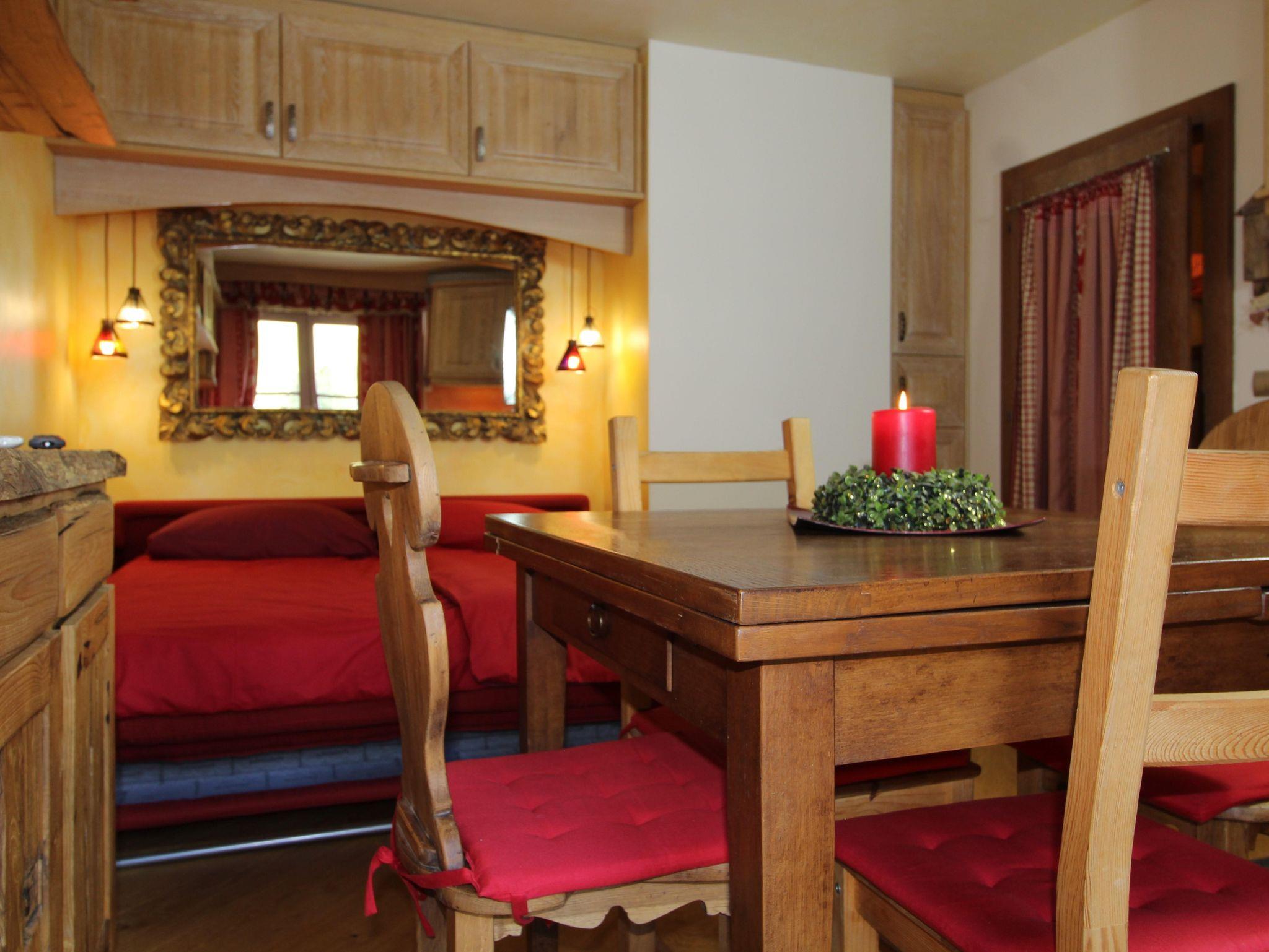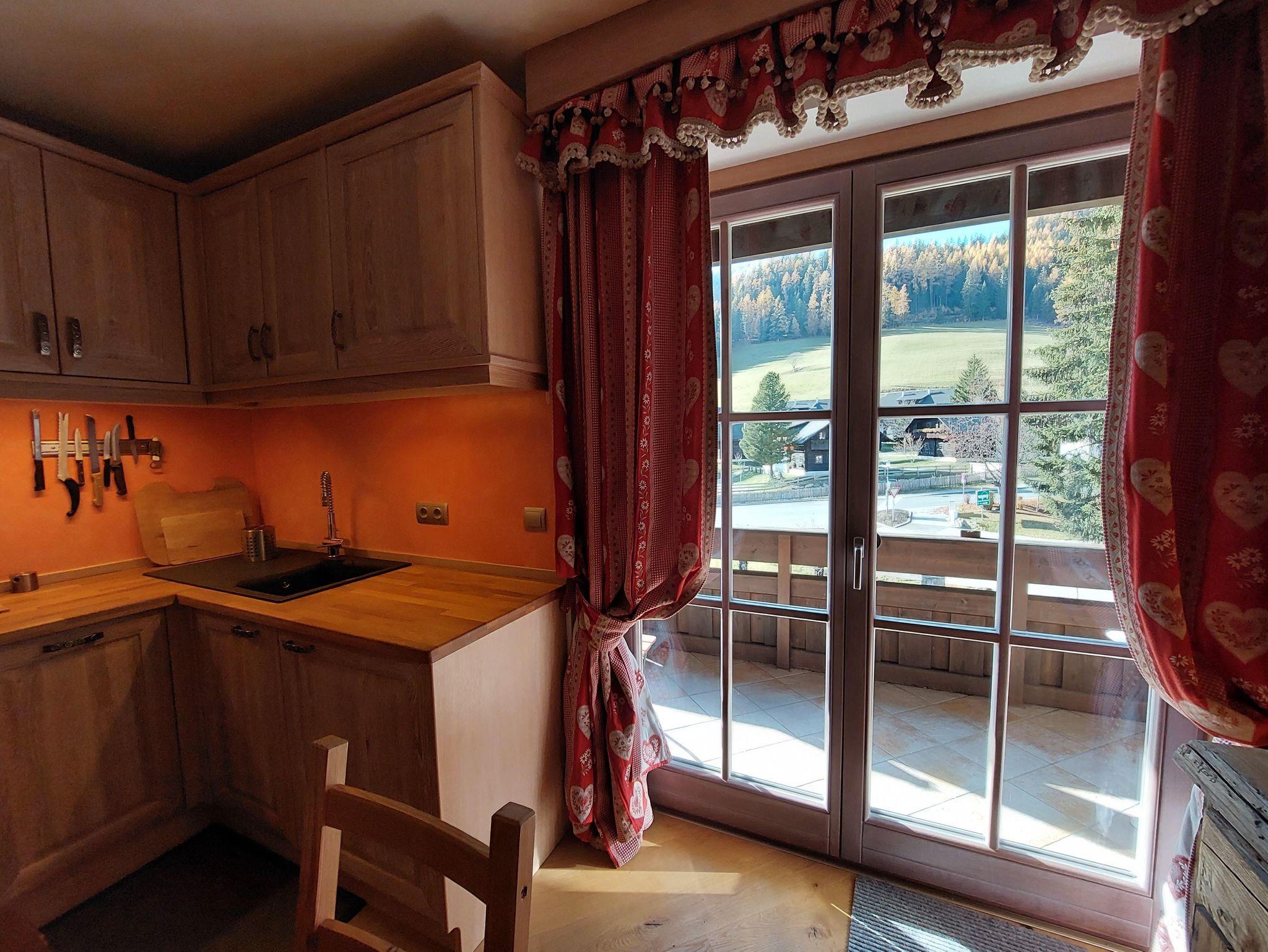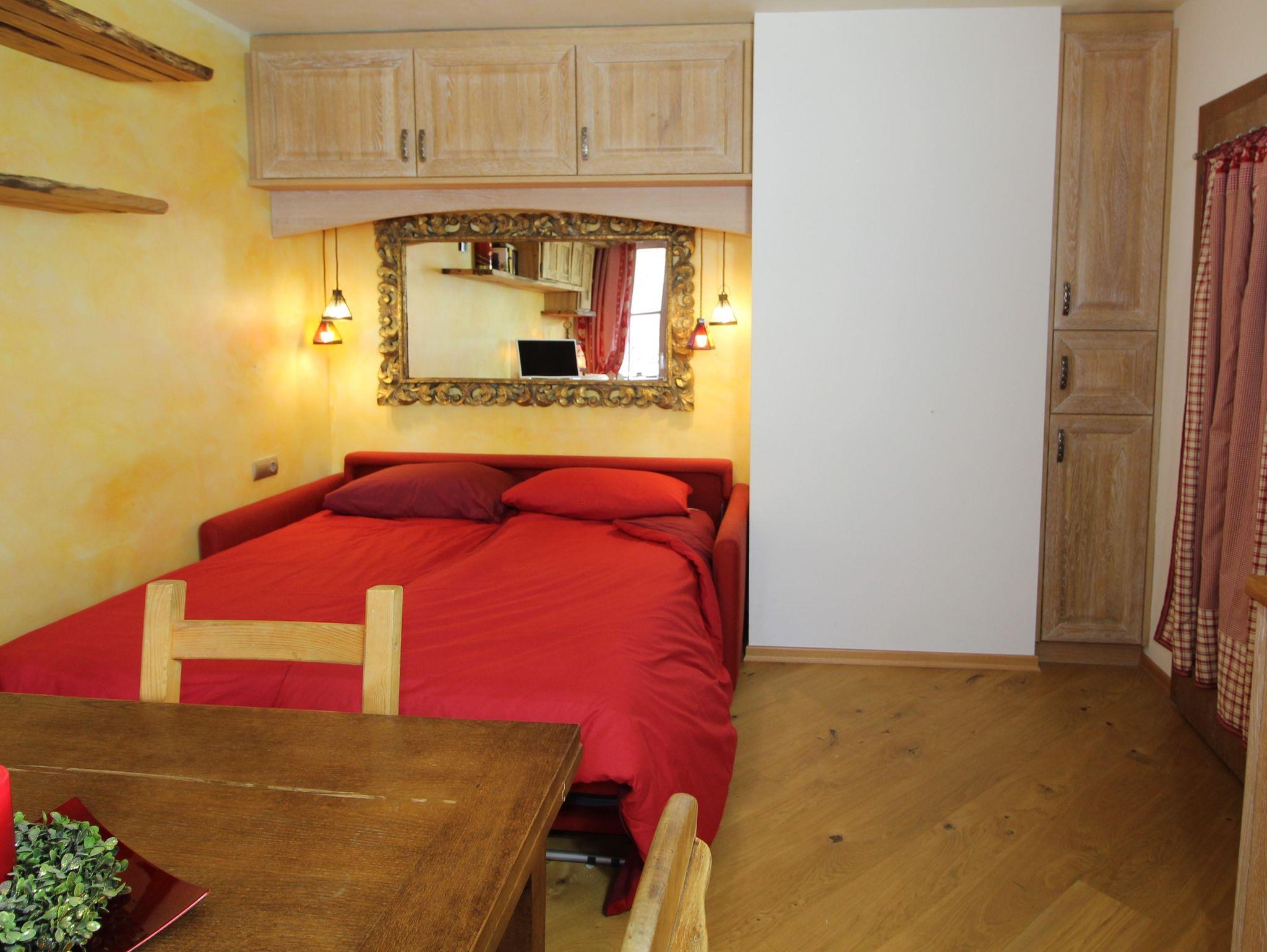 Kleine und sehr schöne Wohnung im Ortsteil Sankt Oswald. Der Raum dieses Studios wurde geschickt genutzt, um 4 Betten unterzubringen, die sich auf ein Etagenbett im Flur und ein bequemes Doppelschlafsofa im Wohnzimmer verteilen. Das Badezimmer verfügt über ein Fenster und eine Whirlpool-Badewanne zum Entspannen nach einem Tag Ski oder Wandern auf den Bergen. Die Küche ist komplett ausgestattet mit Spülmaschine, Backofen, Kühl- und Gefrierschrank. Balkon mit Blick auf die Piste, Skiraum und Parkplatz runden die Annehmlichkeiten dieses Hauses ab.