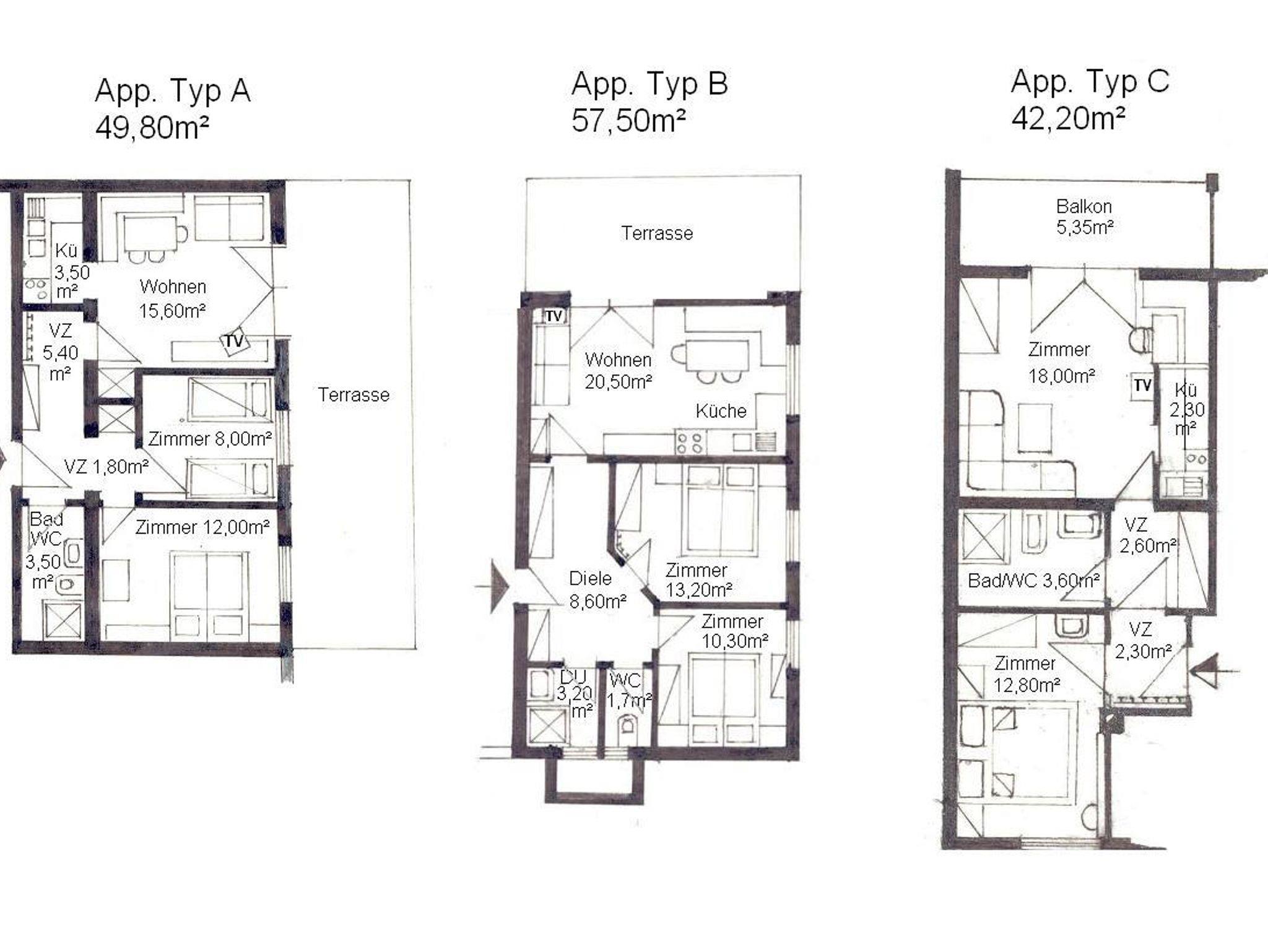 Die Wohnung besteht aus einem Wohnraum mit Sitz- und Wohnecke, mit SAT/TV und Küche, 2 getrennten Doppelzimmern, Dusche und WC getrennt sowie Terrasse oder Balkon.