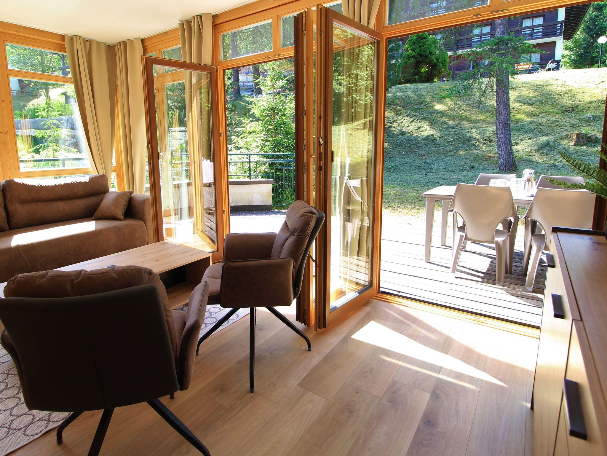 Haus mit 5 Wohnungen in panoramischer Lage. Die Skipiste ist gerade über der Strasse.