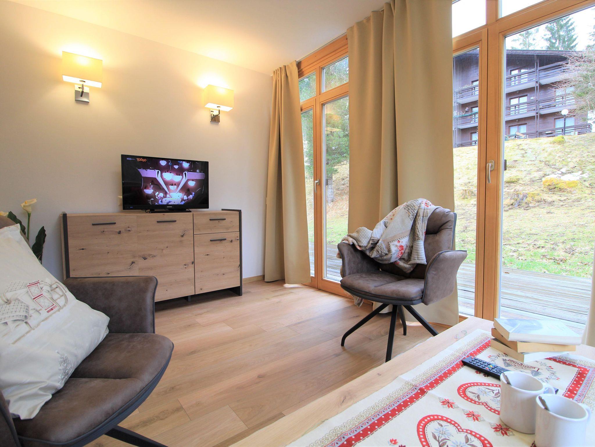 Helle und geräumige Wohnung im ersten Stock, nur einen Steinwurf von den Skipisten entfernt, mit Panoramablick über Bad Kleinkirchheim, ca. 2 km vom Zentrum entfernt. Ein großes Doppelzimmer mit Balkon und Blick auf das Tal, eines mit Etagenbett, Wohnzimmer mit Schlafsofa und Terrasse zum Garten, Esszimmer und Küche, ein komplettes Badezimmer mit Dusche, ein Badezimmer mit Badewanne und Waschbecken + 1 WC. Kleines, gepflegtes Gebäude mit nur 5 Wohneinheiten, Skiraum mit Schuhwärmer, Fahrradkeller, Wäscherei und Wellnessbereich mit Sauna und Dampfbad. Ein Parkplatz im Freien.