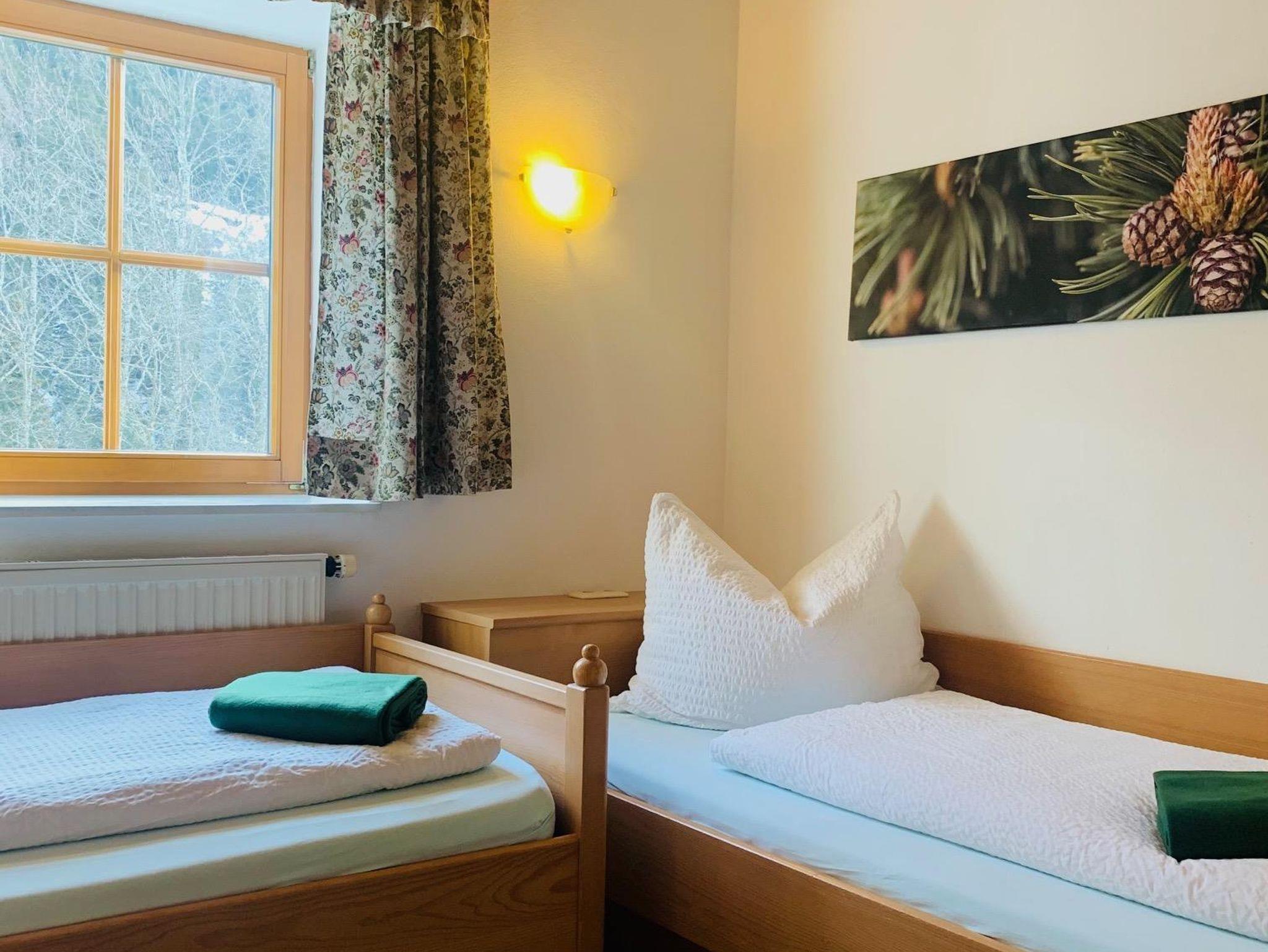 Appartement Fichte für 4 Personen (50 m²) im Erdgeschoß mit Terrasse. Ausgestattet mit erstklassigen Möbeln in Massivholz verfügt das Appartement über zwei Schlafzimmer (ein Doppel- und ein Zweibettzimmer), ein Badezimmer mit Dusche und WC, einen großen Wohnraum mit Couch (auch als Einzelbett verwendbar), Relax-Sessel, SAT-TV, Radio, gratis WLAN, einer gemütlichen Eckbank und einen Küchenblock mit Kühlschrank, Geschirrspüler, Mikrowelle, Kaffeemaschine, Toaster und Kochherd.