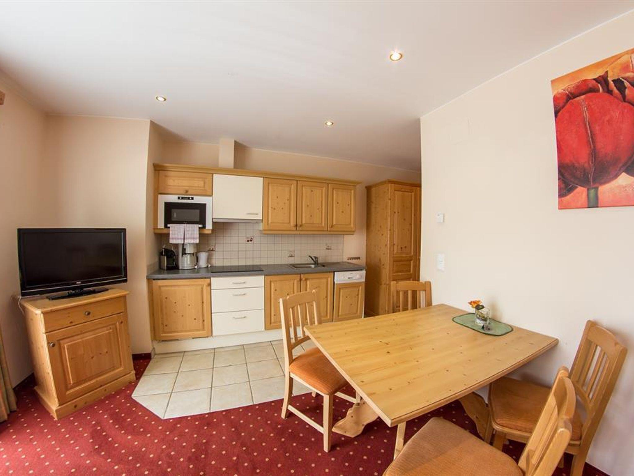 bestehend aus zwei Schlafräumen, (ein Schlafzimmer mit einem Stockbett), einem Wohnraum mit Ausziehcouch, Kochnische mit Geschirrspüler, Espresso Kaffeemaschine und Mikrowelle, Bad und Dusche, WC getrennt, LCD-TV mit Radio, Südterrasse, Nichtraucher-Appartement