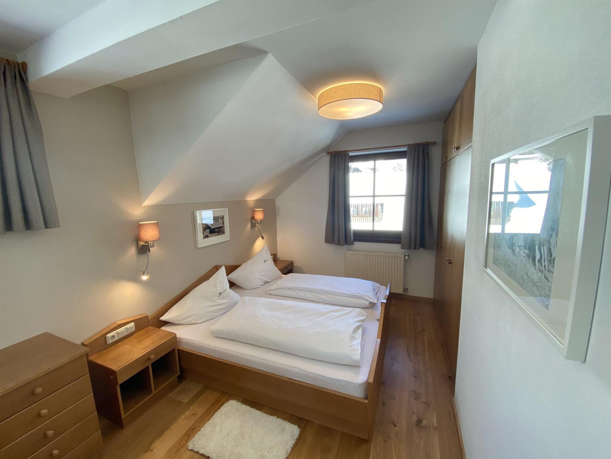 4 bis 6 Personen Appartement mit 3 getrennten Schlafräumen, Wohnraum mit ausziehbarer Couch, Küche mit Geschirrspüler, Bad mit getrenntem WC, SAT-TV, Telefon und Balkon.