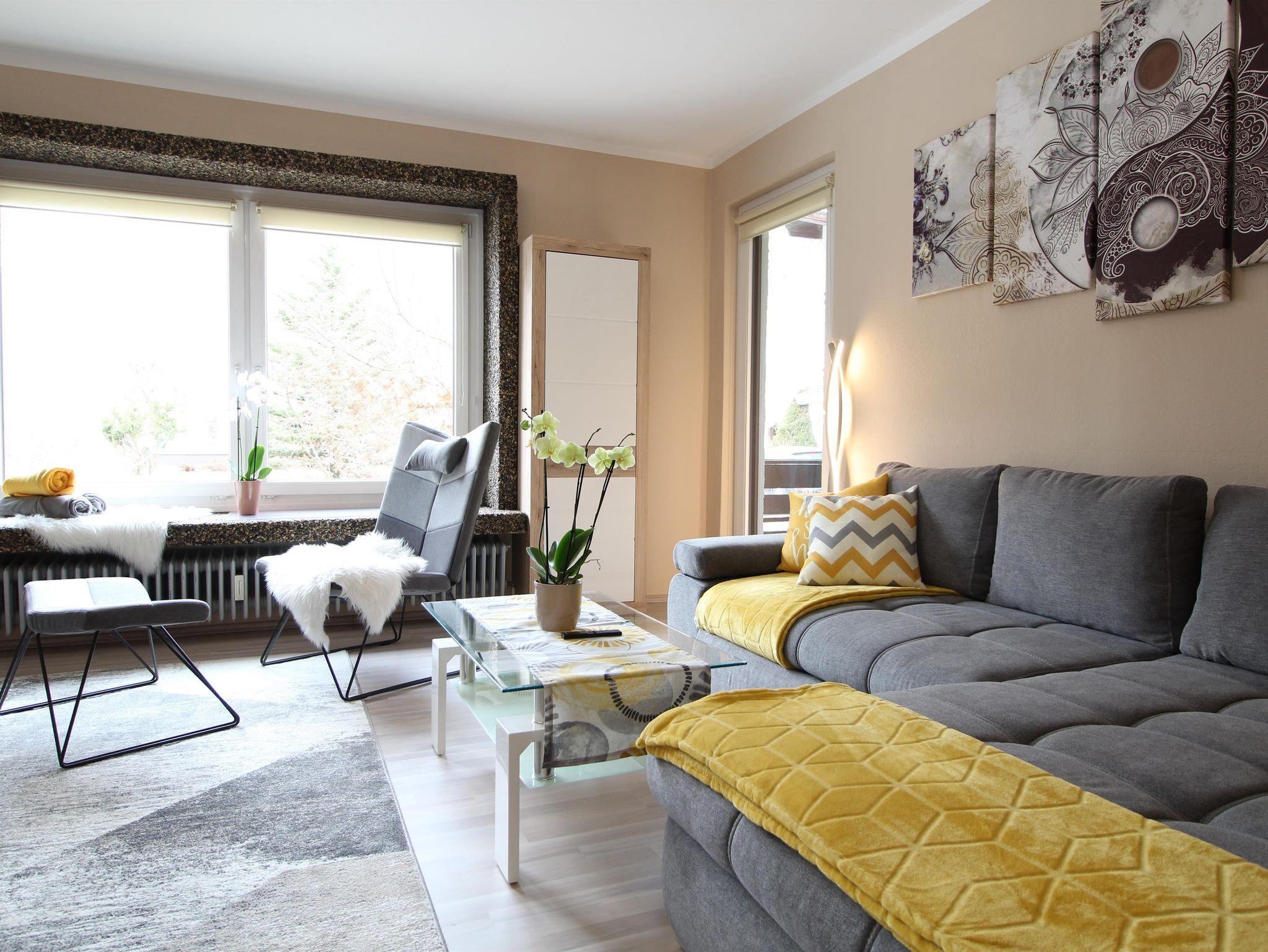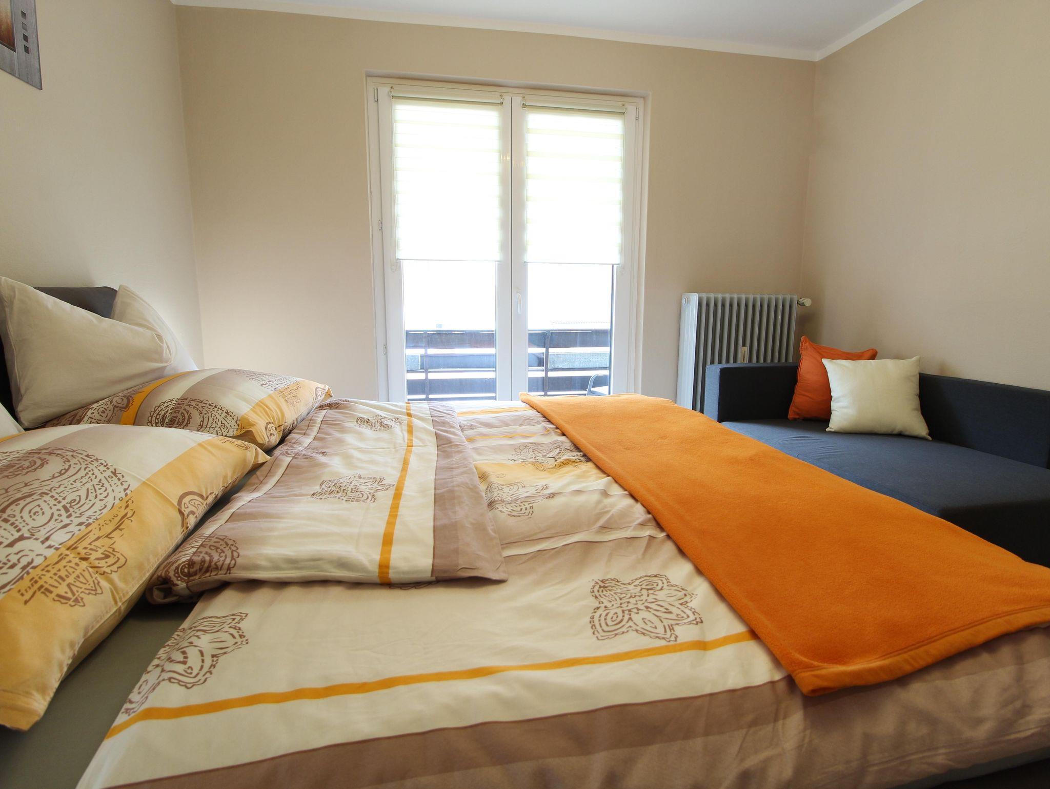 Das Apartment bietet Gartenblick und verfügt über 1 Schlafzimmer mit Zusatzbett & Balkon, 1 Wohnzimmer mit Couch (ausziehbar), 55`Zoll Flach SAT-TV & Balkon, eine voll ausgestattete Küche mit Geschirrspüler und Mikrowelle und 1 Badezimmer mit Dusche.