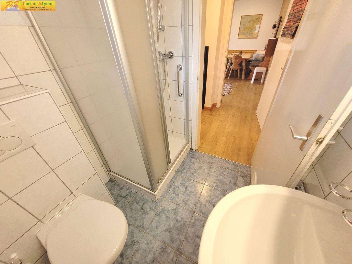 Das Badezimmer verfügt über eine Dusche, Waschbecken, WC und Haartrockner. Für einen noch komfortableren Aufenthalt stehen Ihnen ein Wäscheservice, Staubsauger und Garderobe zur Verfügung.