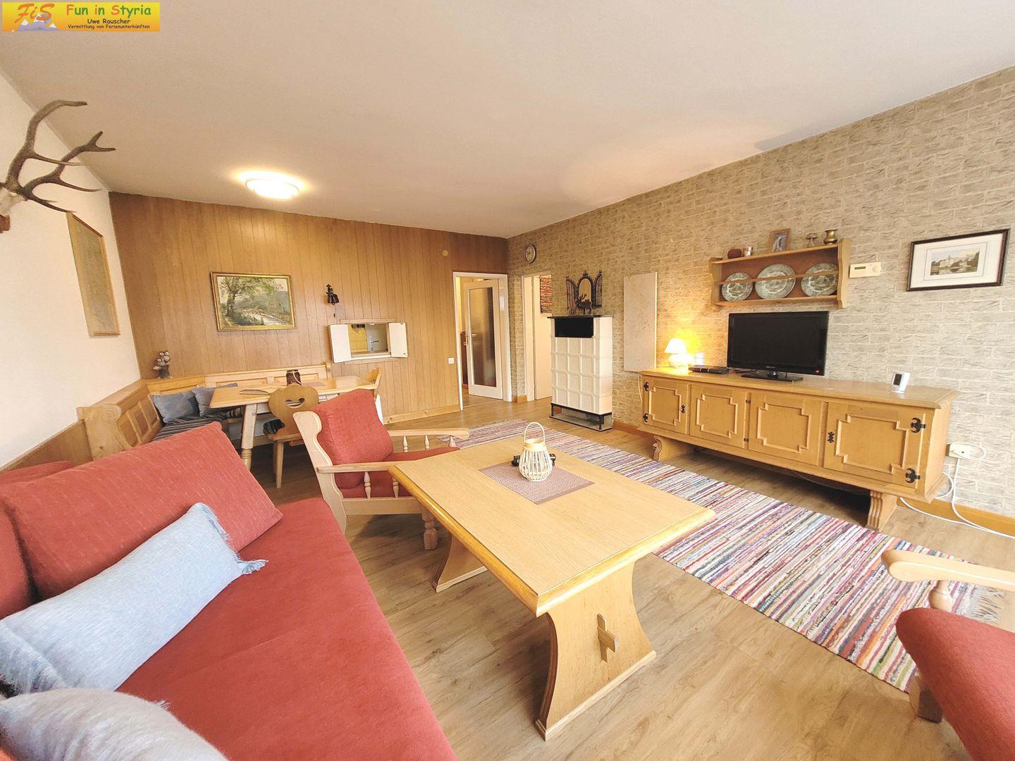 Der Bungalow Irmgard by FiS – Fun in Styria befindet sich in der malerischen Region Bad Mitterndorf in der Steiermark und bietet Erholungssuchenden sowie aktiven Urlaubern einen erstklassigen Aufenthalt im Herzen der österreichischen Bergwelt. Das freistehende und renovierte Haus liegt idyllisch auf einem abgeschlossenen, etwa 500 m² großen Grundstück in einem ruhigen Dorfumfeld auf circa 800 Metern Seehöhe. Von hier genießen Sie einen außergewöhnlich guten Blick auf die umliegenden Berge, ins Tal und auf die beeindruckende Naturlandschaft. Die Lage am Waldrand, umgeben von üppigen Wiesen und Wäldern, lädt zu vielfältigen Aktivitäten an der frischen Luft ein und garantiert Entspannung fernab vom städtischen Trubel.