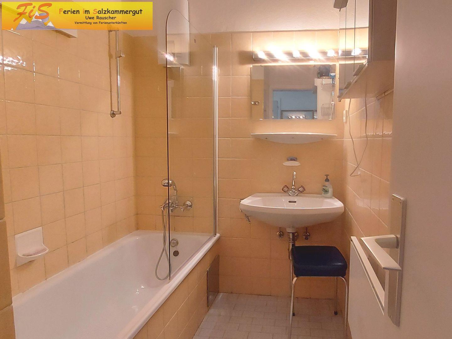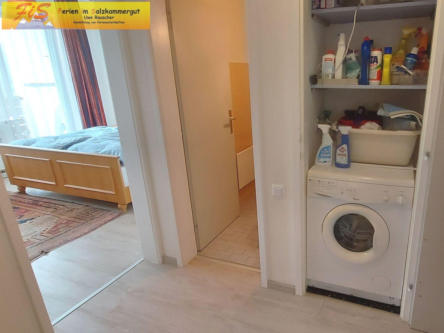 Das Badezimmer ist funktional gestaltet und mit Dusche mit Badewanne, Waschbecken, Spiegel und Haartrockner ausgestattet. Sie finden zudem bereitgestellte Badeausstattung, darunter Seife und Shampoo. Eine Waschmaschine zur Eigennutzung ist vorhanden, ebenso wie ein Wäscheservice.
