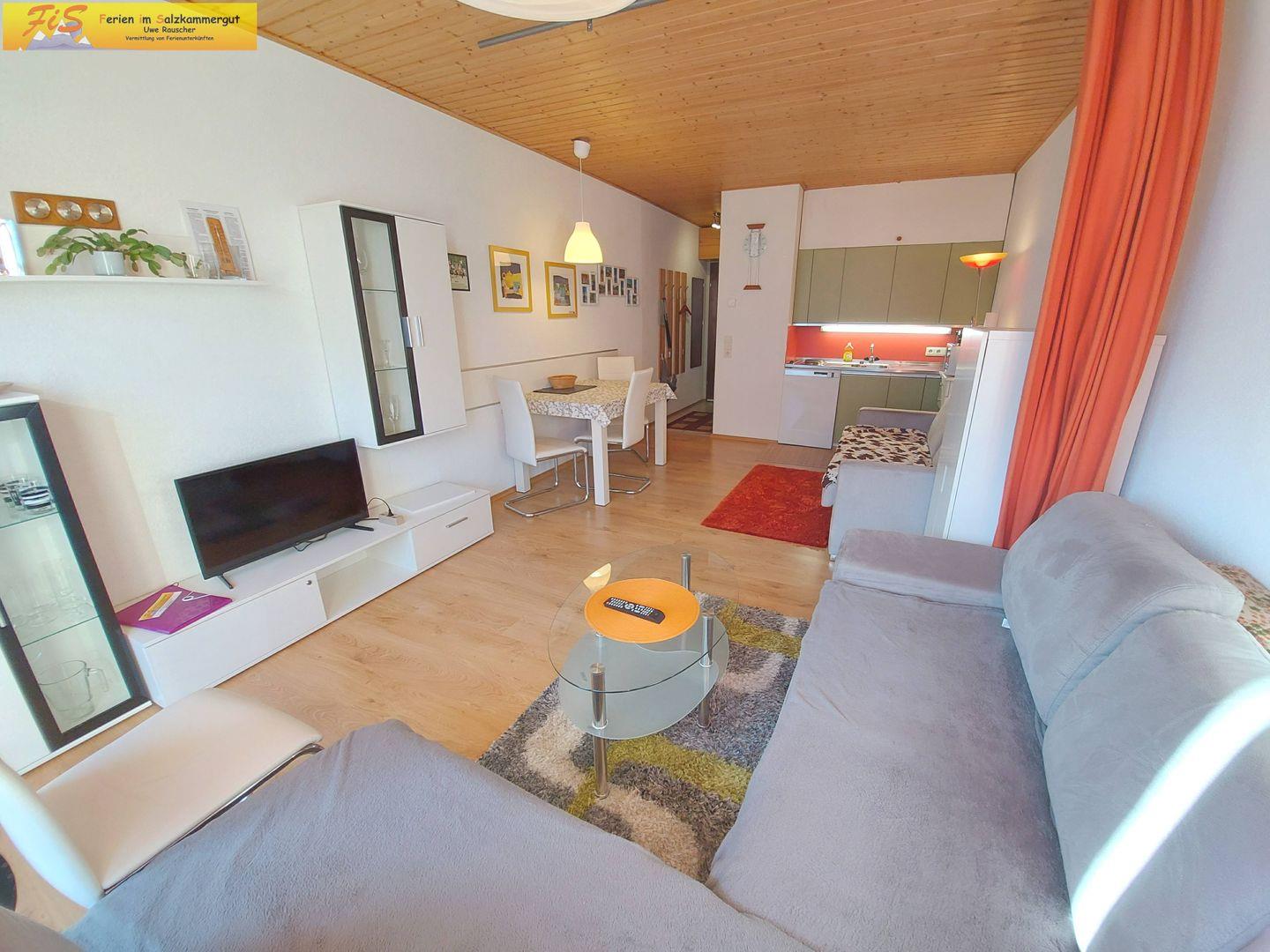 Der Ausblick auf die umliegenden Berge, das Tal und die vielseitige Landschaft ist außergewöhnlich gut und macht das Apartment zu einer Oase der Erholung für Naturliebhaber. Die komfortabel gestaltete Wohnung verfügt über einen lichtdurchfluteten Wohnbereich mit einer gemütlichen Sofaecke und einem digitalen Flachbild-TV (35-44 Zoll, Kabelanschluss, internationale Kanäle). Ein Essbereich mit Esstisch schafft eine angenehme Atmosphäre für gemeinsame Mahlzeiten.