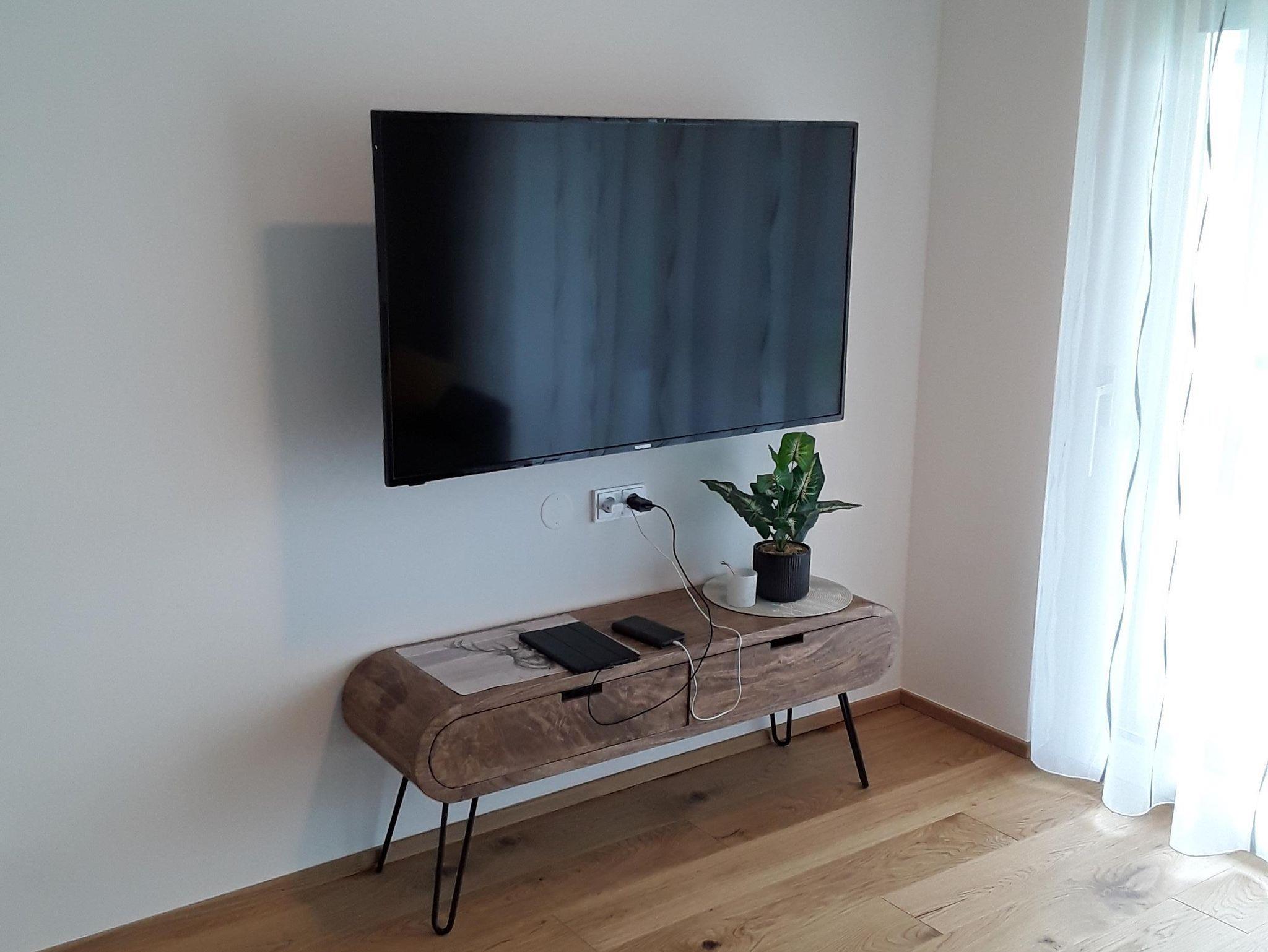 Es befinden sich im Schlafzimmer und im Wohn- Essbereich ein Fernseher. Der Wohnraum und das Schlafimmer sind mit einer Klimaanlage ausgestattet, das Apartment mit Strom von der eigenen PV Anlage versorgt, dadurch wird auch ein Beitrag zum Klimaschutz geleistet.