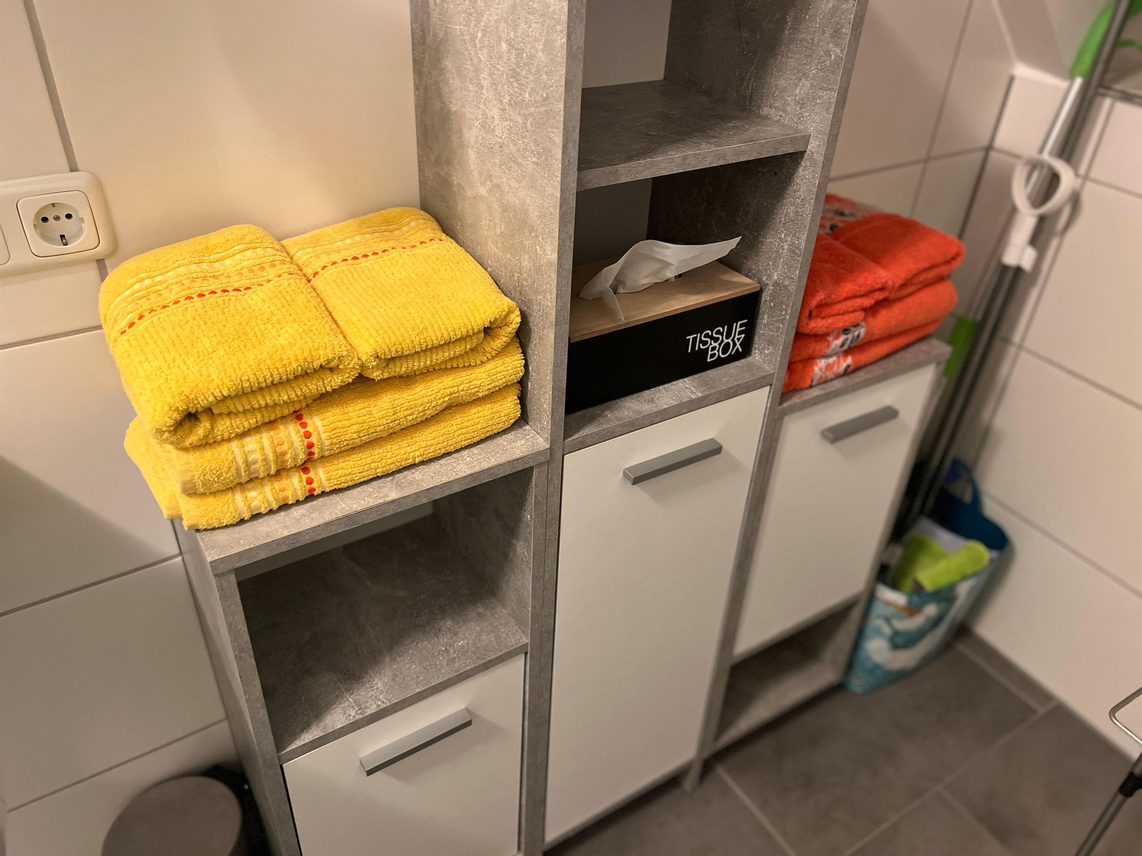 • Flauschige Handtücher und Bade-/Duschtücher (50x100 cm & 70x140 cm / 4 pro Pers.).