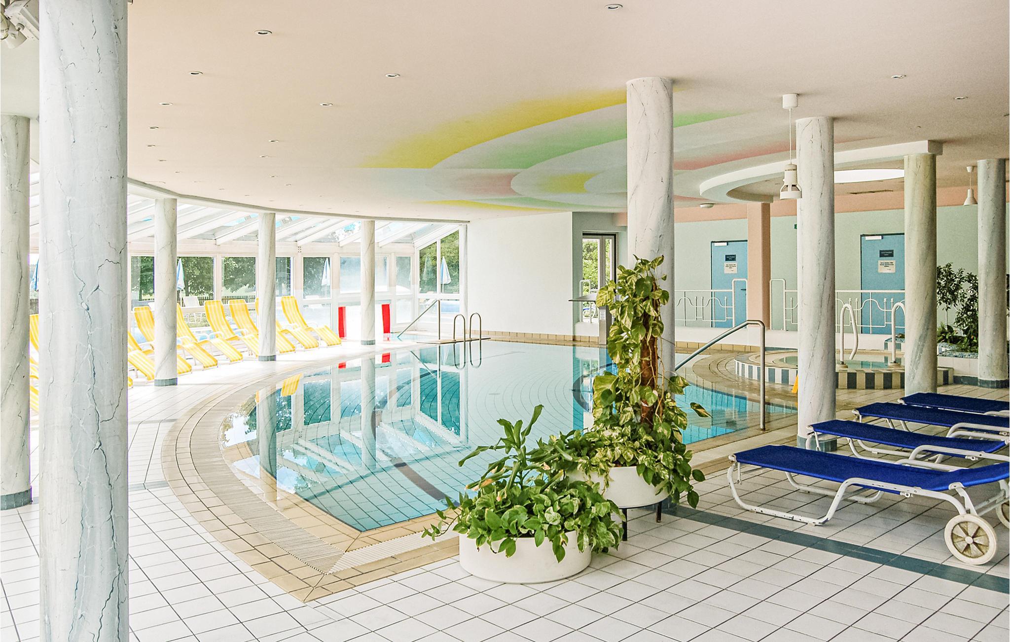 Glæd jer til at nyde de rummelige bade- og saunafaciliteter i Biodorf og i det tilstødende hotel til fulde. Her er: indendørs pool, udendørs pool og spabade med termisk vand, havvandspool, indendørspool med vitalt vand, fyrretræssauna, finsk sauna, dampbade, infrarød kabine og fitnessrum.