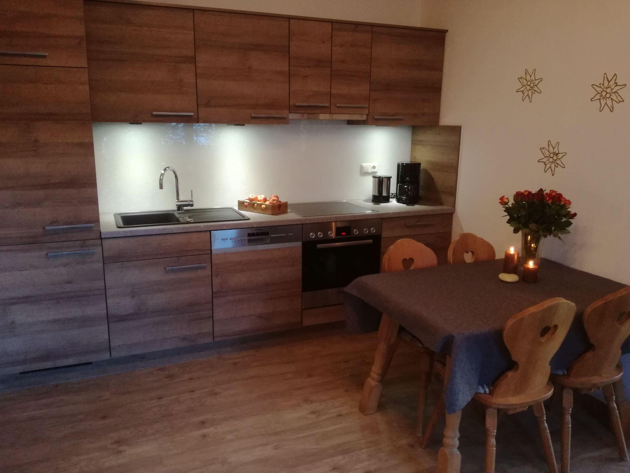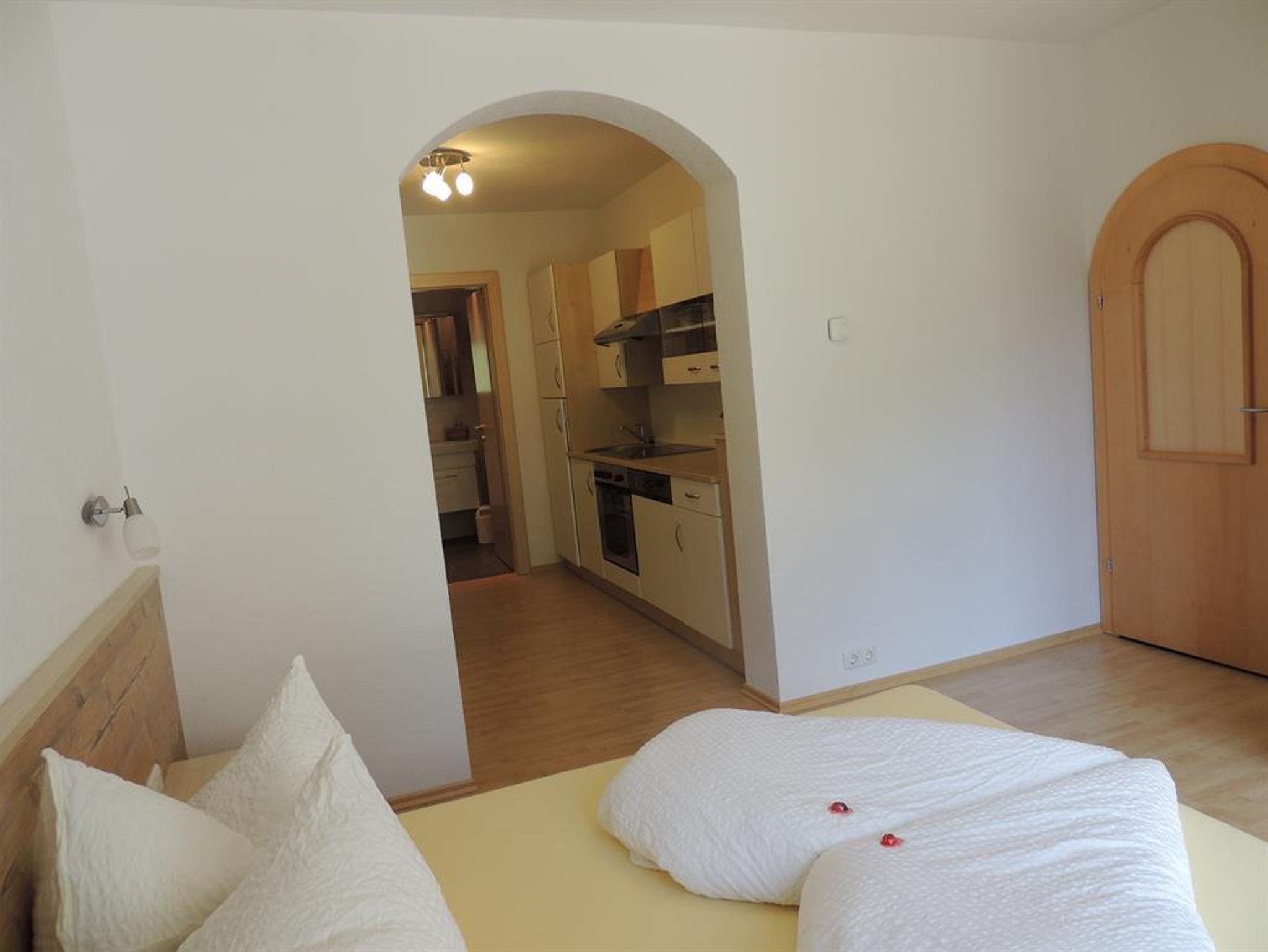 Unser neu errichtetes Studio Almkpfblick ist ideal für 2 Personen, ca. 25m², Schlafzimmer, Küchenblock, DU/WC, Sitzecke, Terrasse