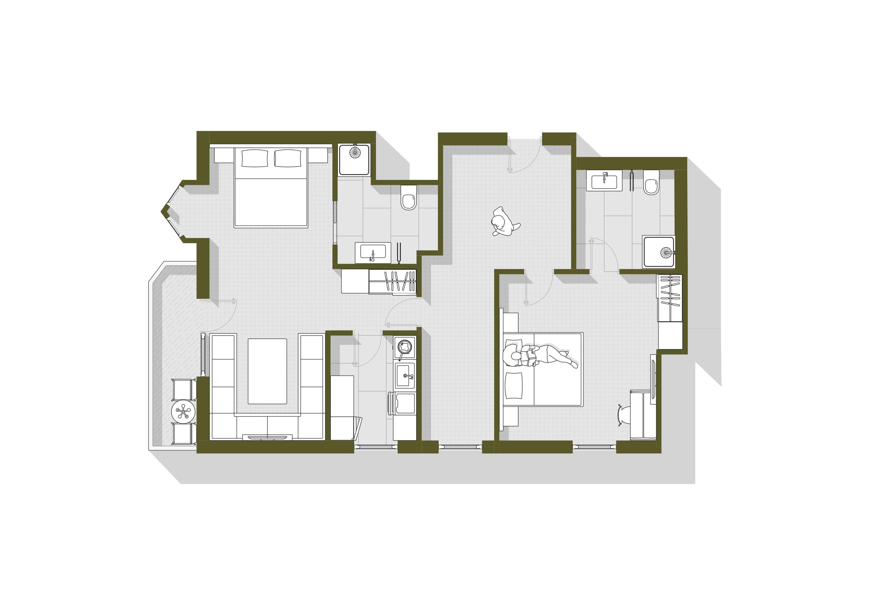Alle Wohnungen haben eine voll ausgestattete Küche mit Geschirr, Kaffeemaschine, Nespressomaschine, Mikrowelle und Wasserkocher. Bettwäsche und Handtücher sind ebenfalls vorhanden.
