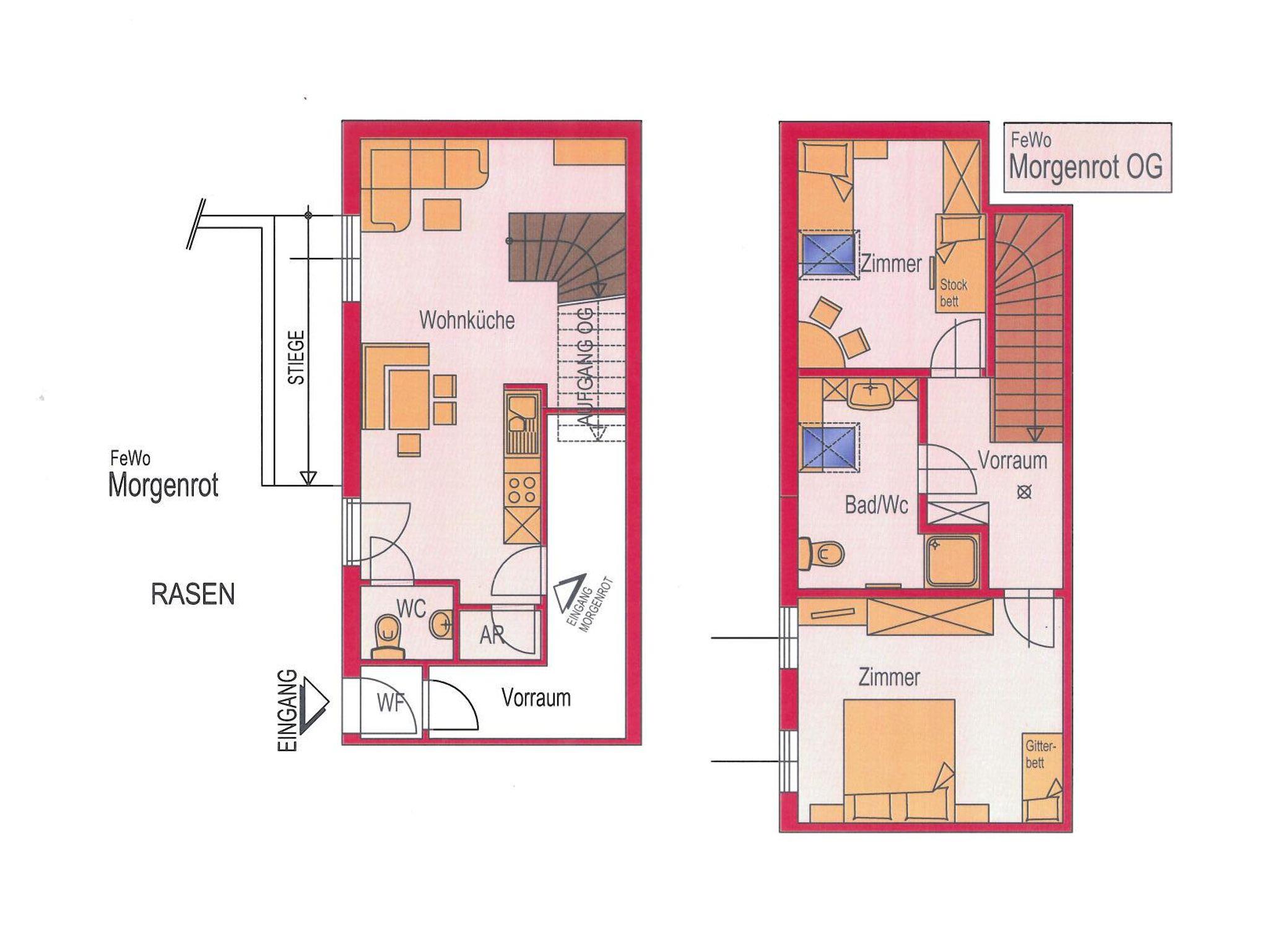 In der Ferienwohnung Morgenrot ist das Frühstücken im Freien besonders schön, da Sie schon bei der ersten Mahlzeit des Tages die Sonne begrüßt. Selbstgetischlerte Möbel vom Opa Franz verleihen der Ferienwohnung ein besonderes Flair.