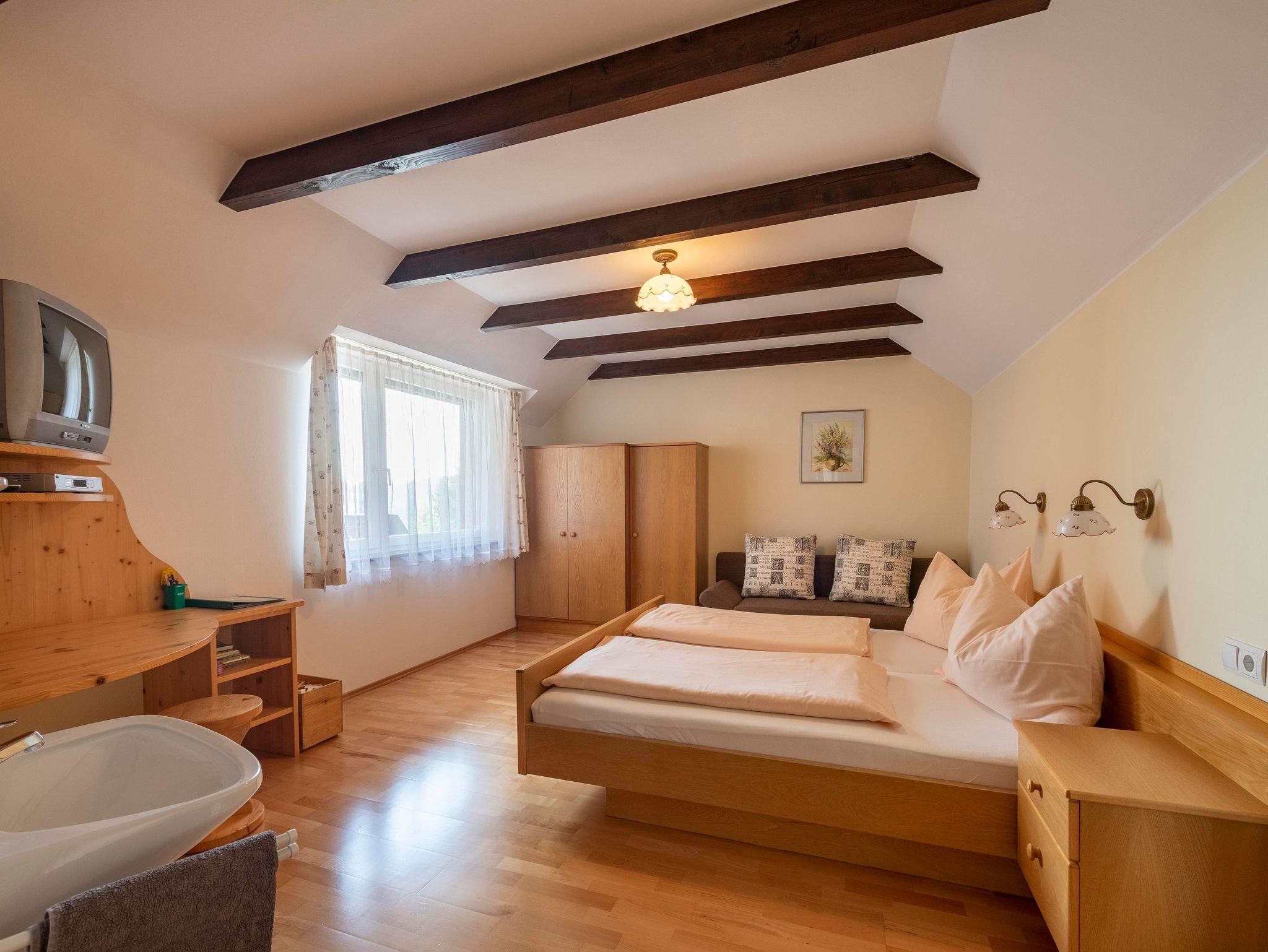 Ein Platz zum Wohlfühlen. 4 Ferienwohnungen in 720 m Seehöhe, ruhige Lage, abseits vom Hauptverkehr umgeben von Wald und Wiesen, für 2-5 Pers., je 2 Schlafzimmer, Wohnküche, DU, WC, Terasse oder Sitzgarten,ein Unterstellplatz pro Ferienwohnung im Carport fürs Auto, Kaminstüberl mit Spielecke, großer Erlebnisspielplatz, Kleintierstreichelzoo, Grillabende, geführte Wanderungen. Wir sehen uns als Betrieb für Familie und Ruhesuchende. Wir freuen uns darauf, für Sie persönlich da zu sein.
