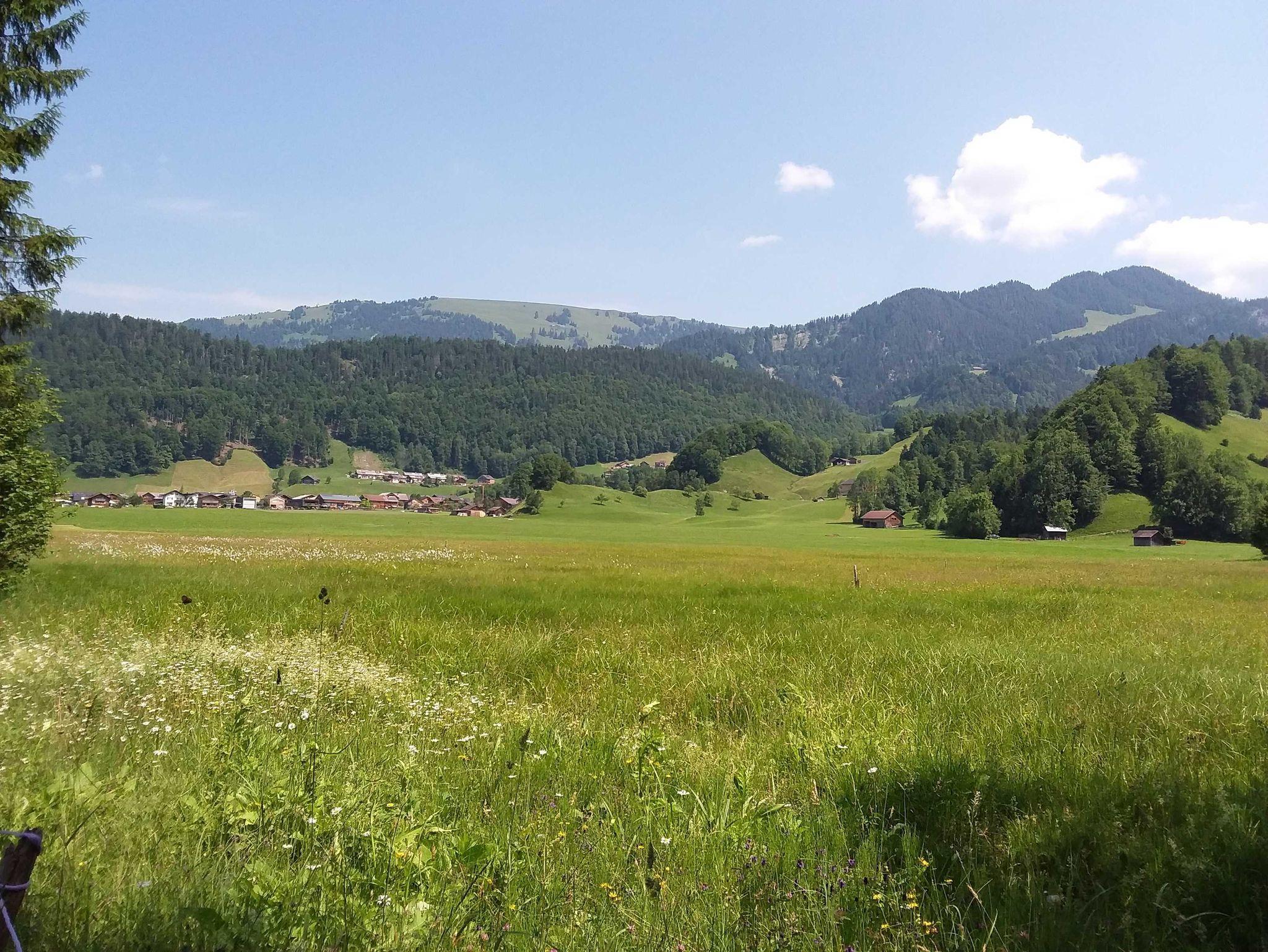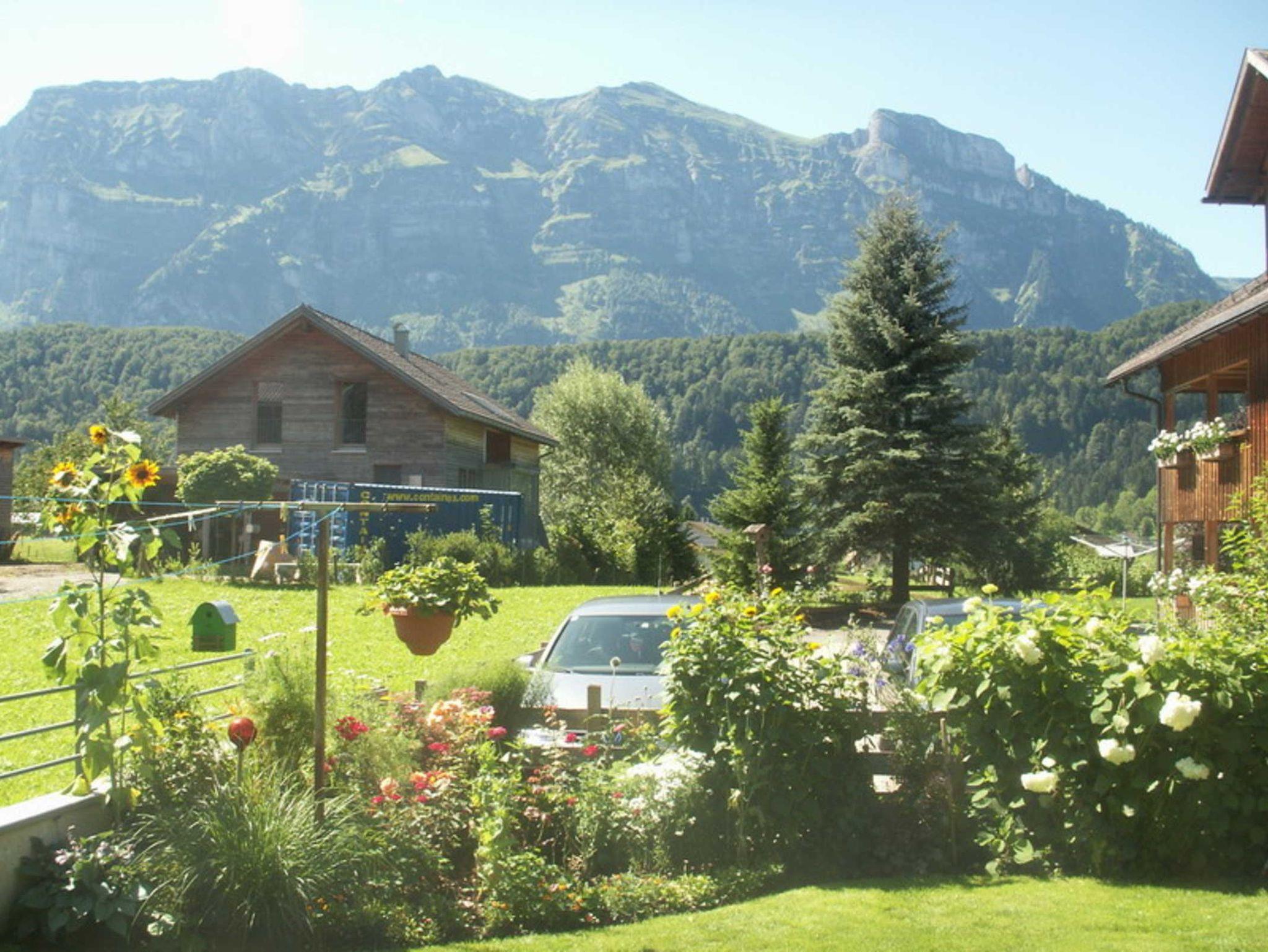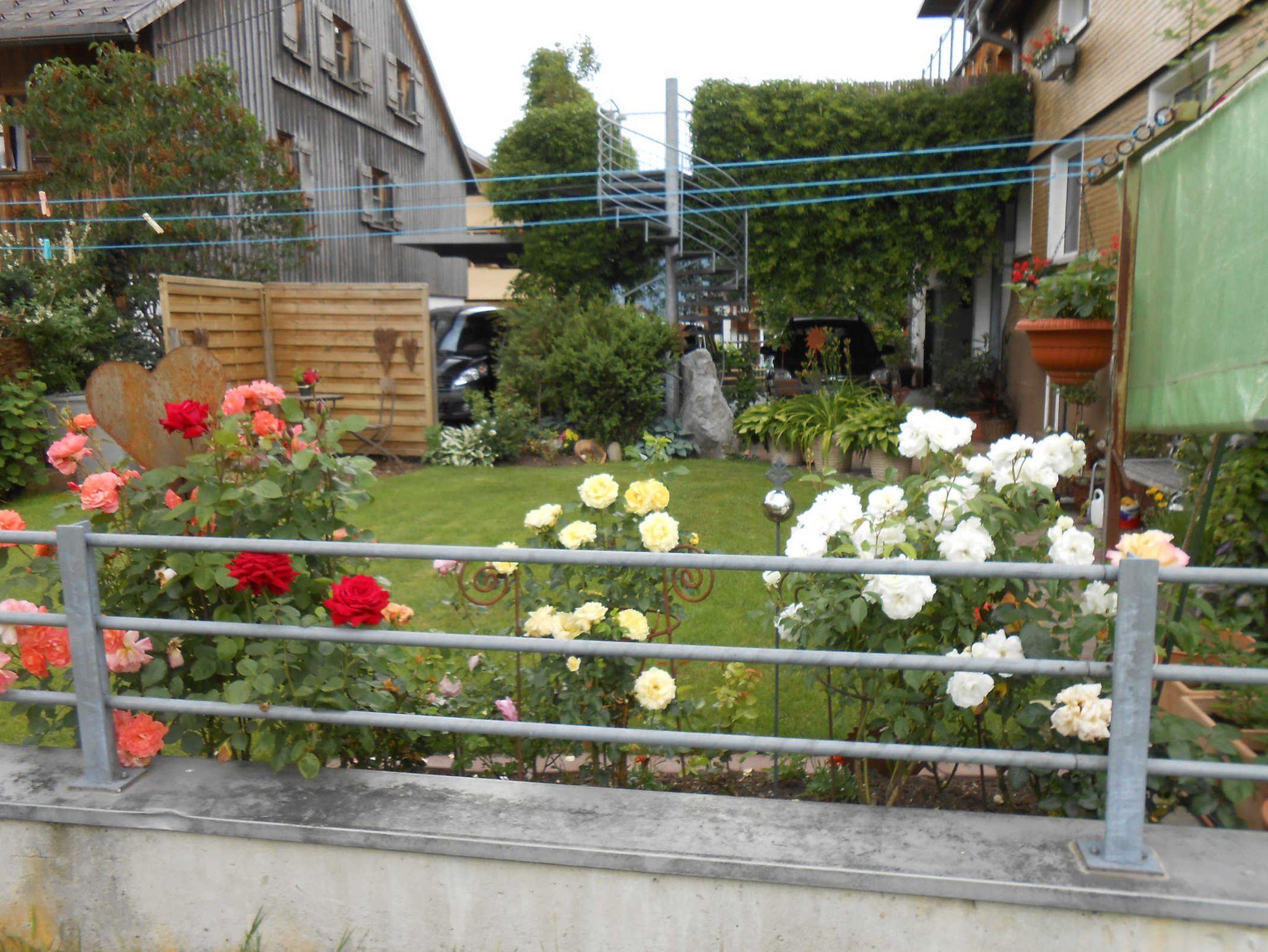 Die ruhige Lage unseres Hauses - mit Blick zum Hirschberg und zur Kanisfluh - ist in Zentrumsnähe und ohne Durchzugsverkehr. Für Ihr Auto steht ein Carport zur Verfügung. In unserem Garten mit sommerlichem Flair steht eine Sitzecke für Sie bereit.