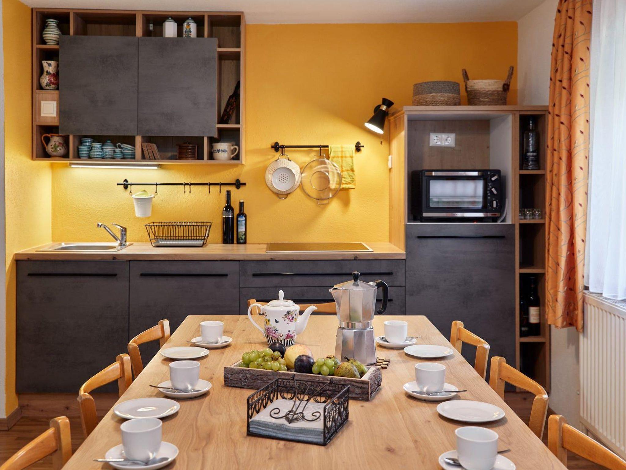 Gemütliche, moderne Küche im Obergeschoss. Sehr gut ausgestattet mit Geschirrspüler, Backofen, Wasserkocher, Kaffeemaschine & was das Herz begehrt.