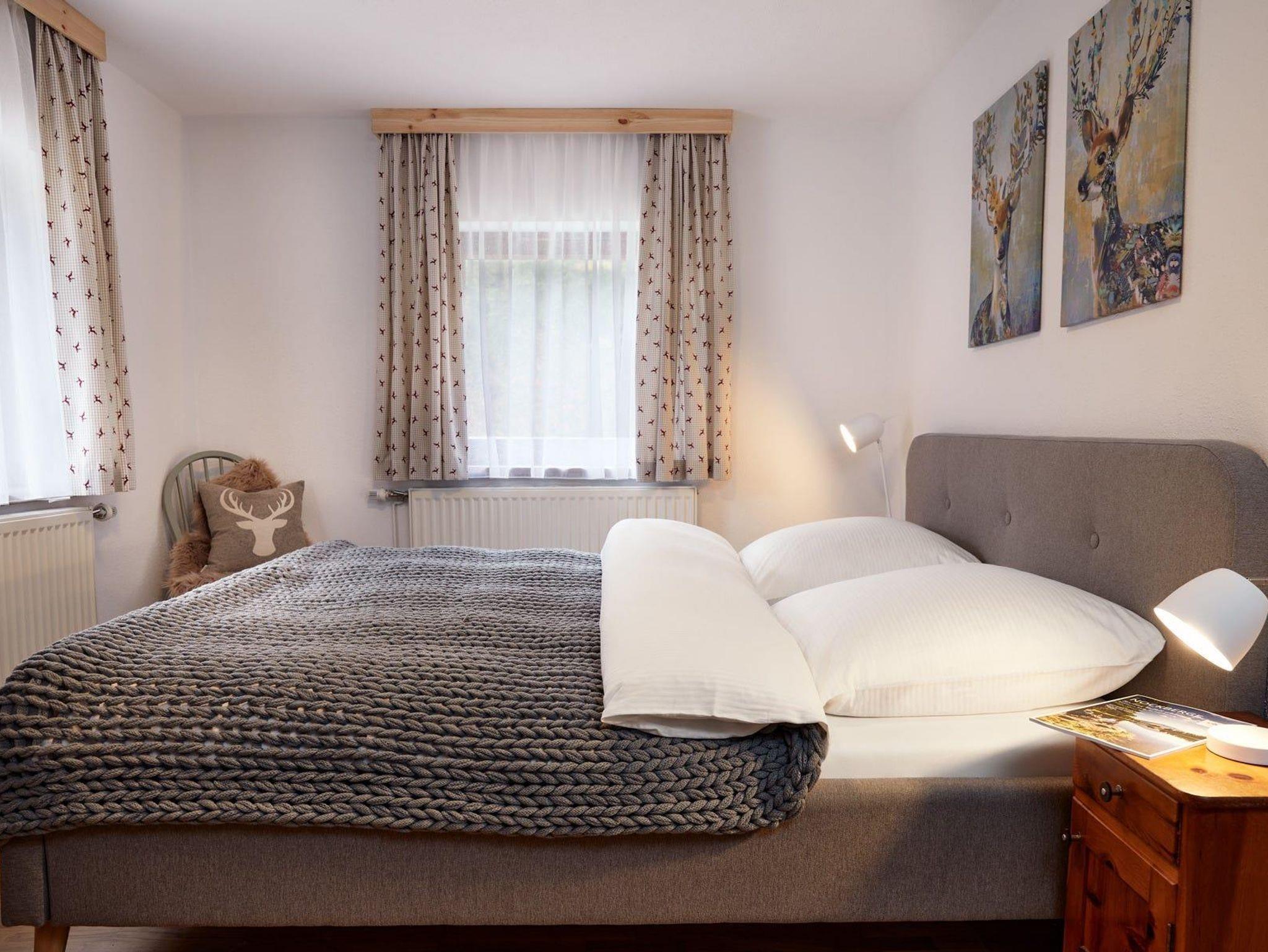 4 Schlafzimmer mit Doppelbett, 3 davon im Obergeschoss, 1 im Erdgeschoss.