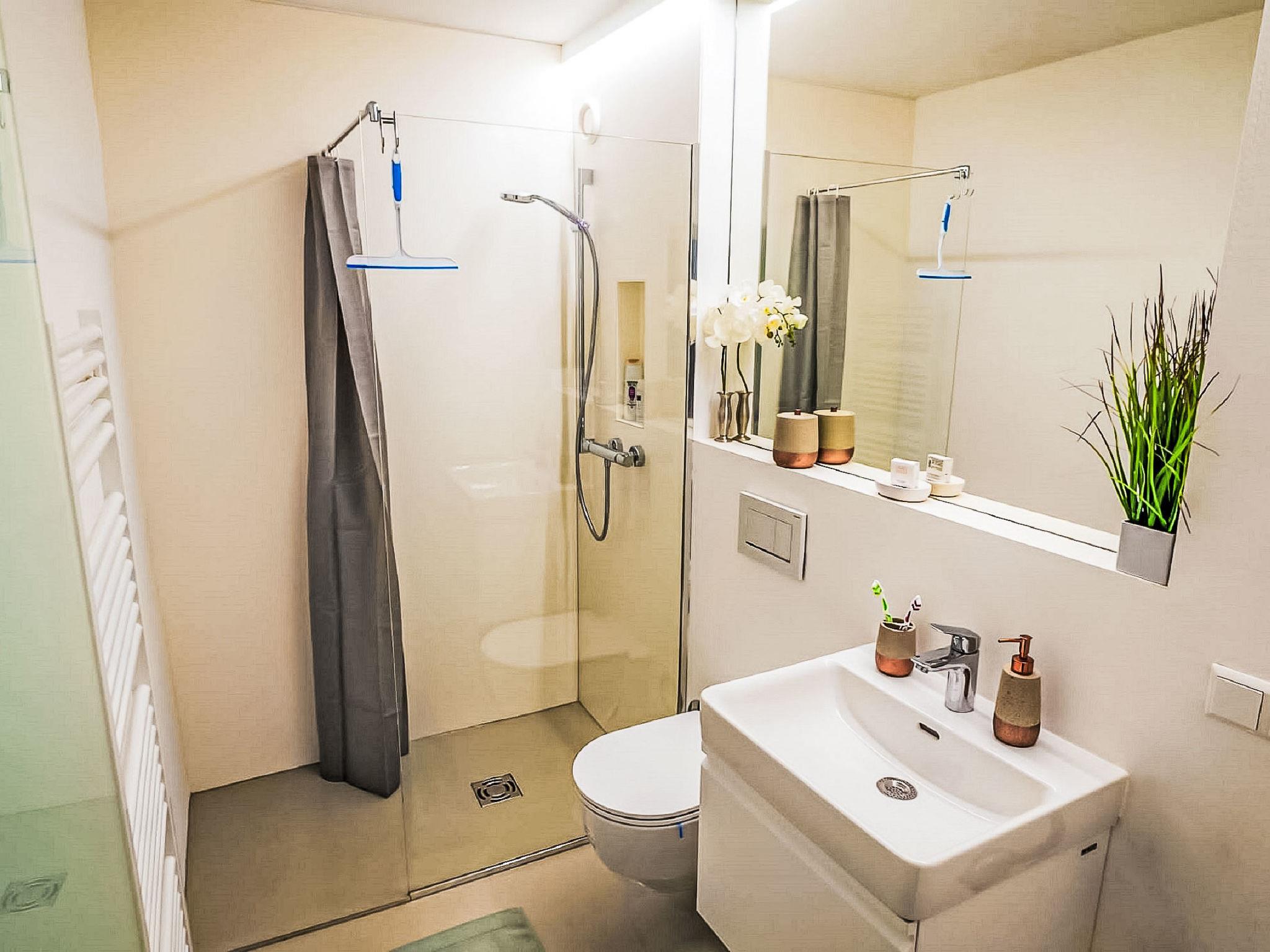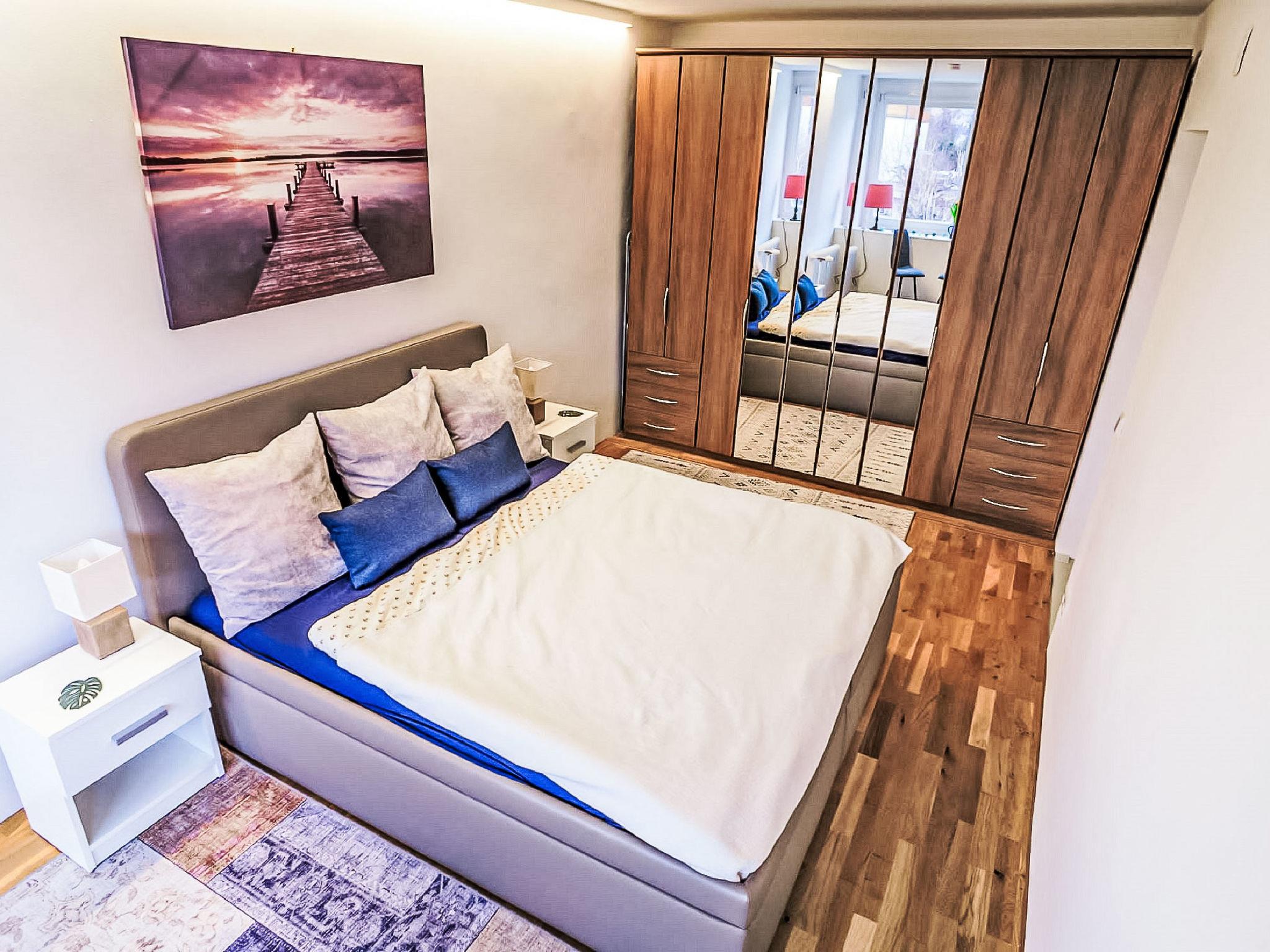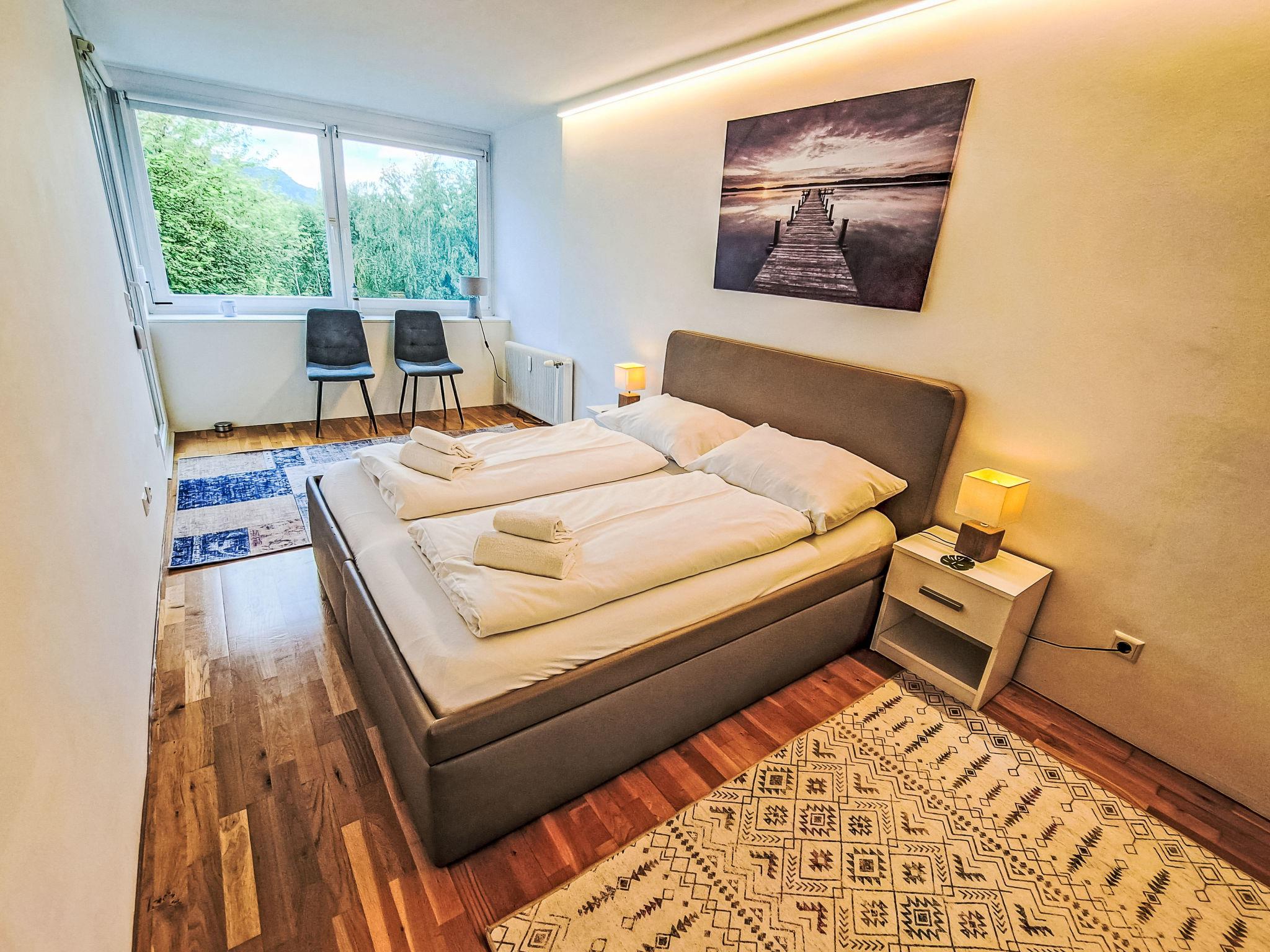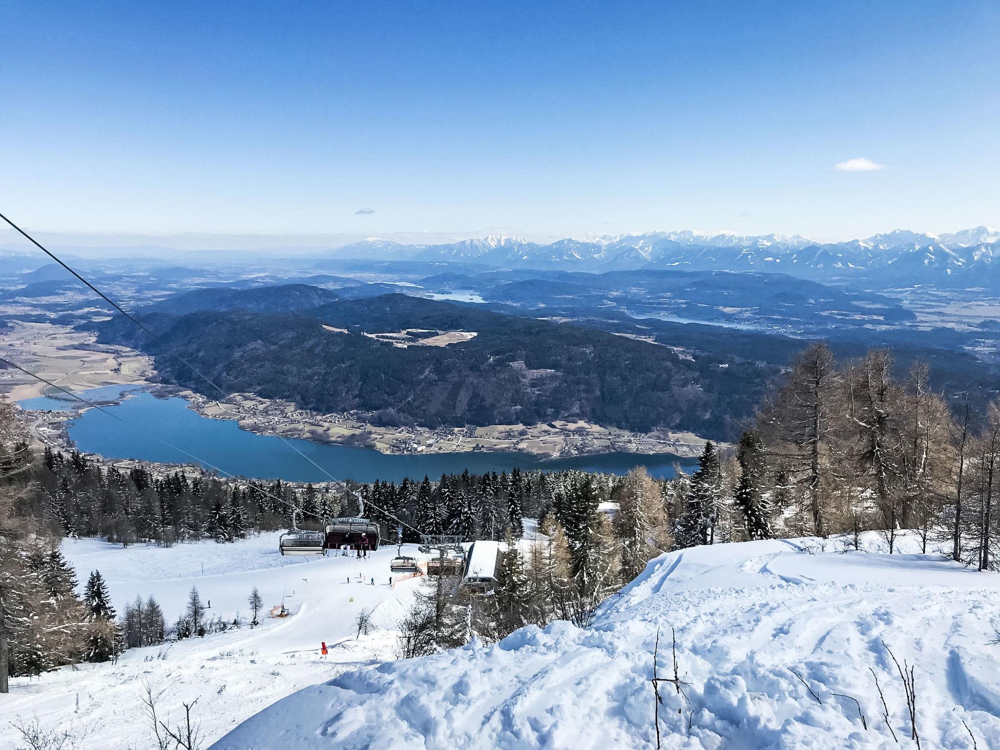 "Seezugang & Ski Ossiacher See", 2-room apartment 52 m2 on 2nd floor. Bright, fully renovated, very comfortable and modern furnishings: entrance hall. 1 room with 1 double bed. Exit to the balcony. Living/dining room with 1 double sofabed, dining table and satellite TV (flat screen). Exit to the balcony. Kitchen (oven, dishwasher, 4 ceramic glass hob hotplates, toaster, kettle, microwave, electric coffee machine). Shower/WC. Heating. Large balcony 10 m2. Balcony furniture, deck chairs (2). Very beautiful panoramic view of the lake. Facilities: iron, mosquito net, baby cot for up to 2 year olds, hair dryer. Internet (WiFi, free). Parking at the house. Please note: non-smokers only.