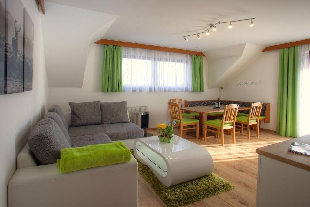Vores fem ferielejligheder i gæstehuset har plads til to til fem personer. Lejlighederne har et soveværelse (dobbeltseng + ekstra seng), et badeværelse med bruser, to toiletter, en entré med garderobe, en stue med sovesofa (to senge) og et fuldt udstyret køkken. Naturligvis har alle enheder balkon eller terrasse med panoramaudsigt!