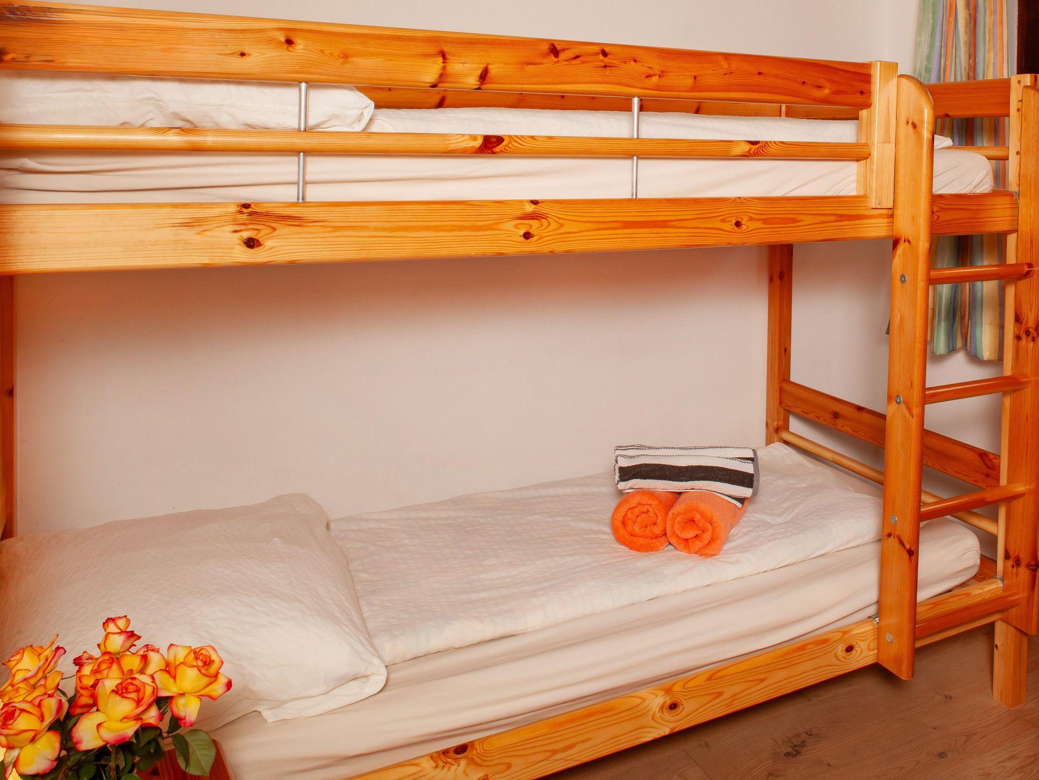 Schöner Bungalow für 4-5 Personen mit südseitig gelegener Terrasse. 2 Schlafräume (1x mit Etagenbetten)+ Wohnraum mit Schlafcouch.