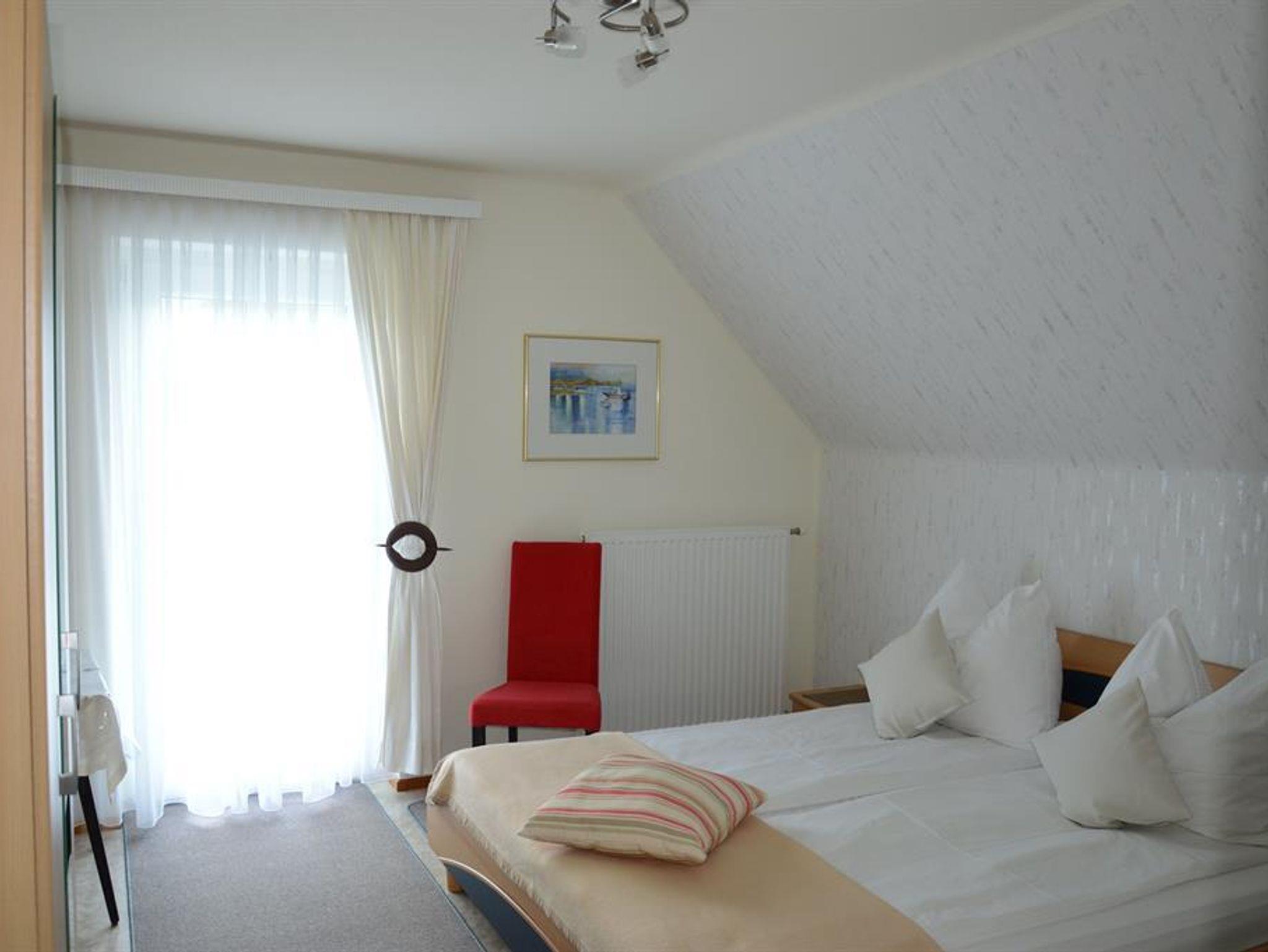 In dieser reizende liebevoll eingerichtete südseitigen Wohnung im Oberstock mit Balkon und Seeblick finden sie Ruhe und Erholung mit einem schönen Blick in den Garten. Die Wohnung besteht aus: Einem Schlafraum mit Doppelbett,Einzelschlafraum (Kind) Wohnküche mit Couch und SAT-TV, Dusche - WC. Morgens am Balkon das Frühstück in der Sonne genießen - abends den Tag mit einem Gläschen ausklingen lassen.