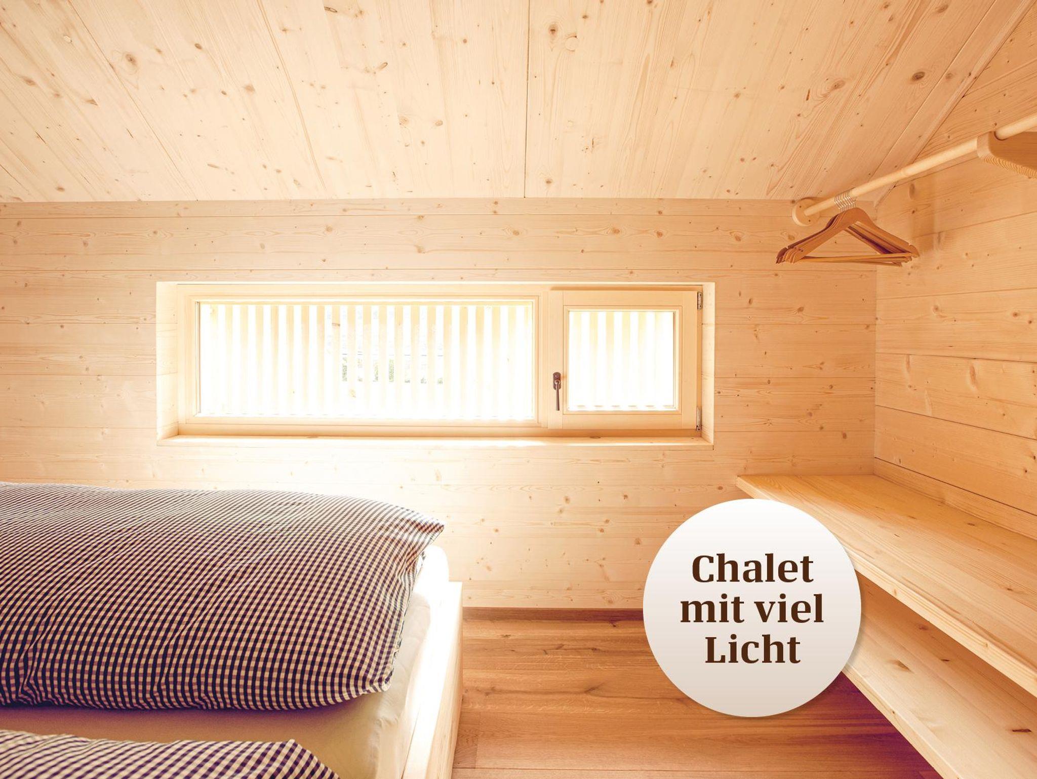 Das Chalet bietet auf 80?m² Platz für bis zu 6 Personen und erstreckt sich über zwei Stockwerke. Im Obergeschoss befinden sich zwei Schlafzimmer mit Doppelbetten sowie ein Schlafzimmer mit zwei Einzelbetten. Darüber hinaus verfügt das Chalet über eine komplett ausgestattete Küche mit allen wichtigen Küchenutensilien, ein Badezimmer mit Dusche, eine Terrasse, einen Garten, eine überdachte Veranda mit Sitzbank und einen Parkplatz direkt vor der Hütte.