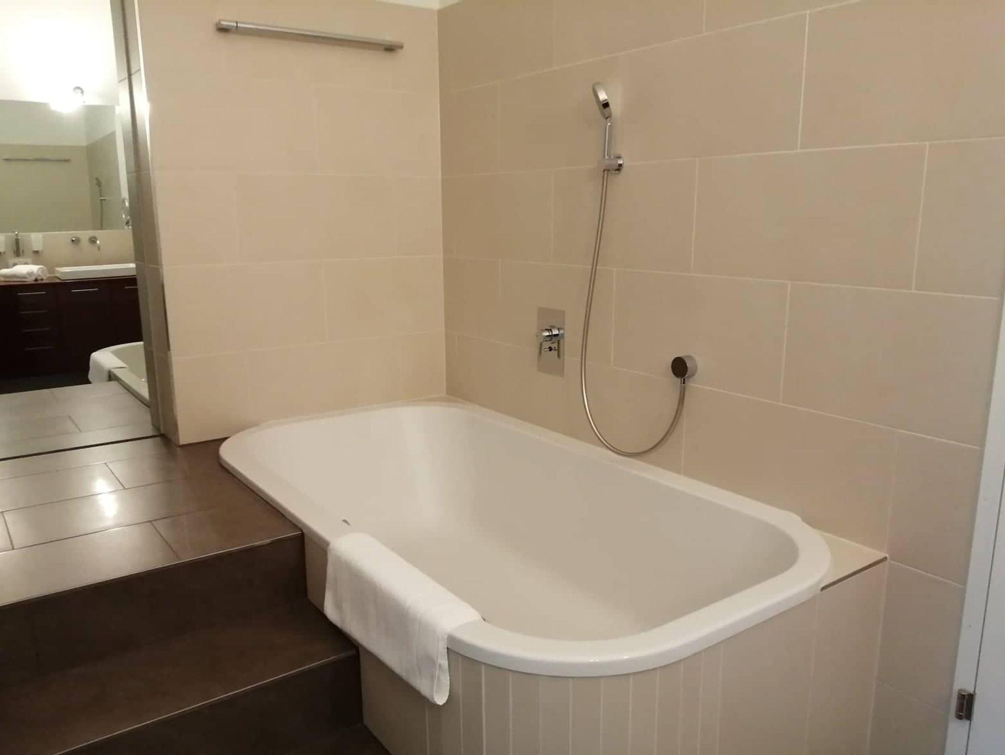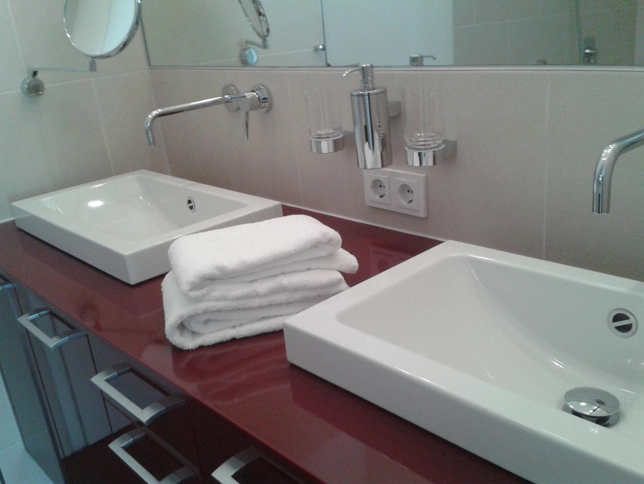 Als Manko wurde von uns die Art der Beleuchtung befunden und dass kein Haltegriff bei der Badewanne vorhanden war.