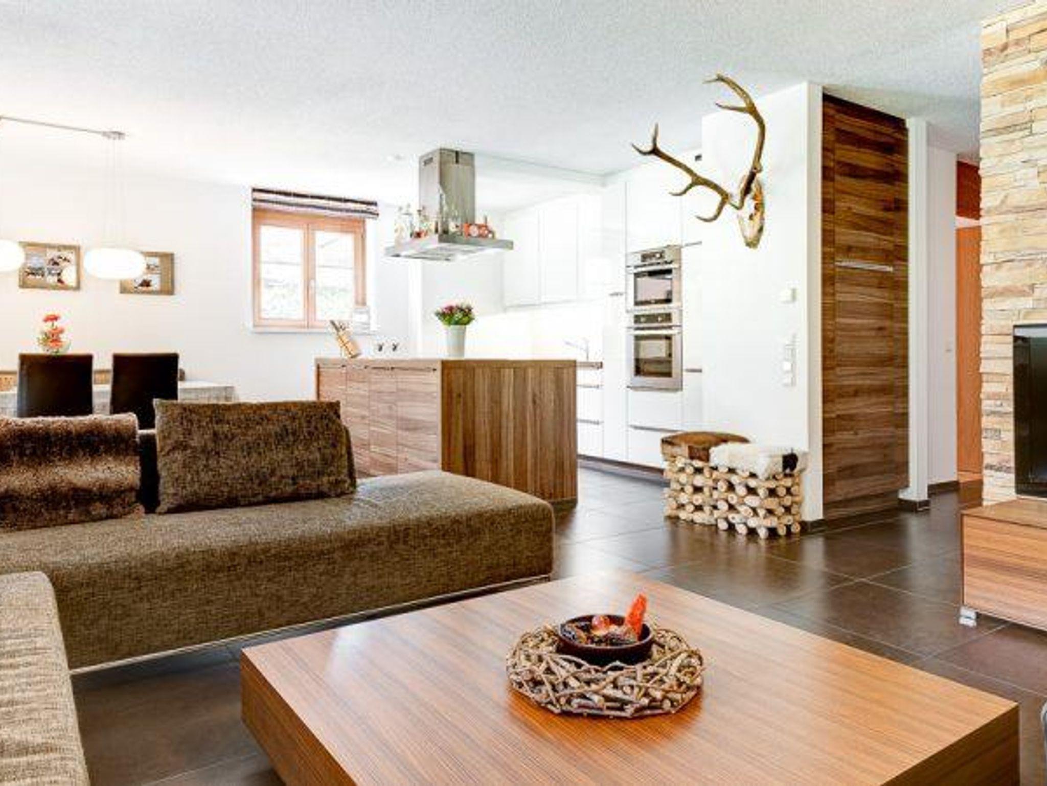Auch das Wohnzimmer, die Küche und der Esstisch des Appartements sind für zehn Personen sehr großzügig ausgeführt.