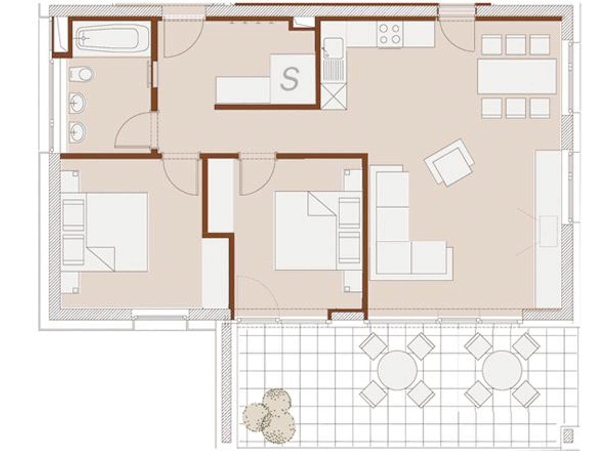 flexible, familienfreundliche Appartement-Aufteilung mit Verbindungstüren