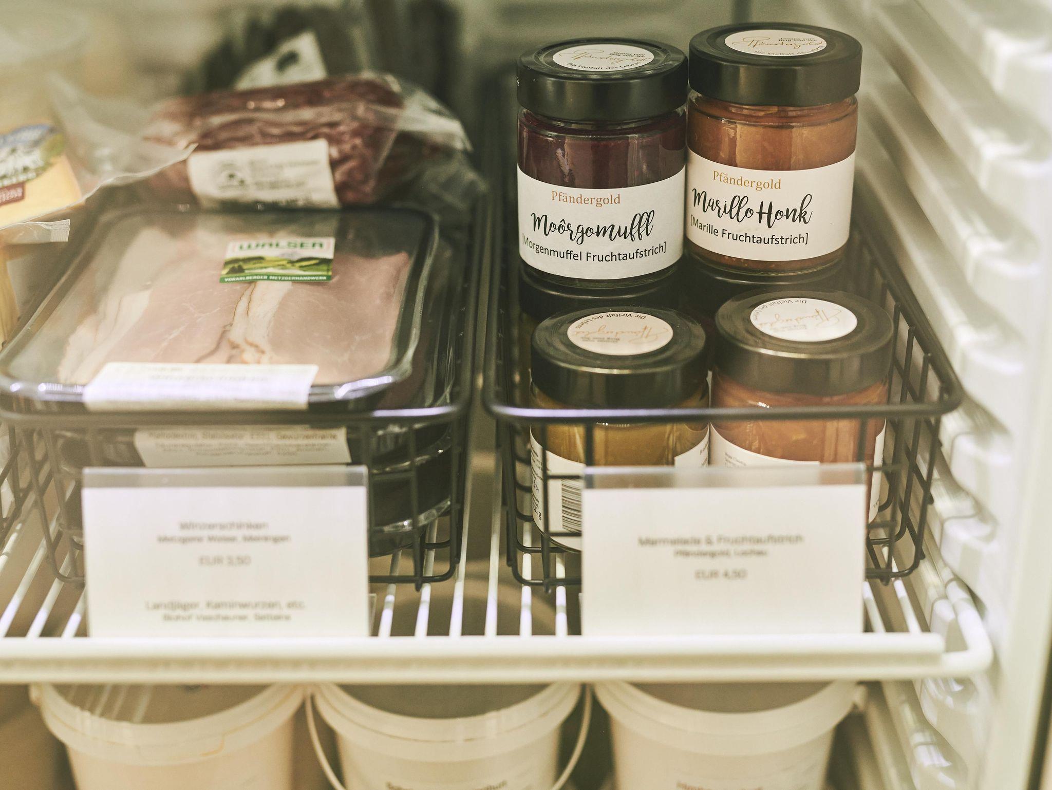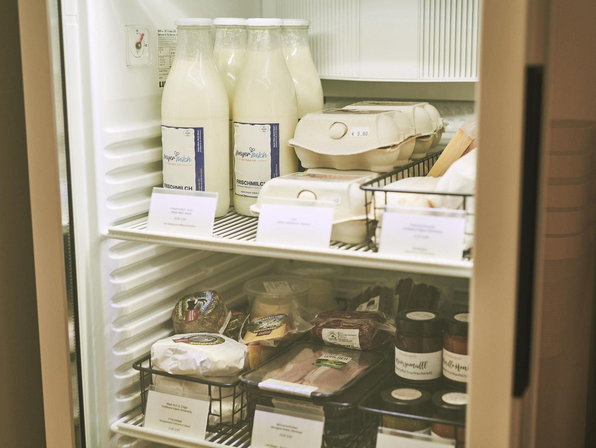 Für einen wunderbaren Start in den Morgen gibt es unseren frei zugänglichen Honesty Kühlschrank/Bar (SB 24/7) mit regionalen Produkten von unseren Bauern und Lieferanten (Butter, Käse, Schinken, Milch, Joghurt, Marmelade, Müsli, Honig, Getränke, Kaffeekapseln uvm.) sowie Brötchenservice von unserem Bäcker auf Vorbestellung.