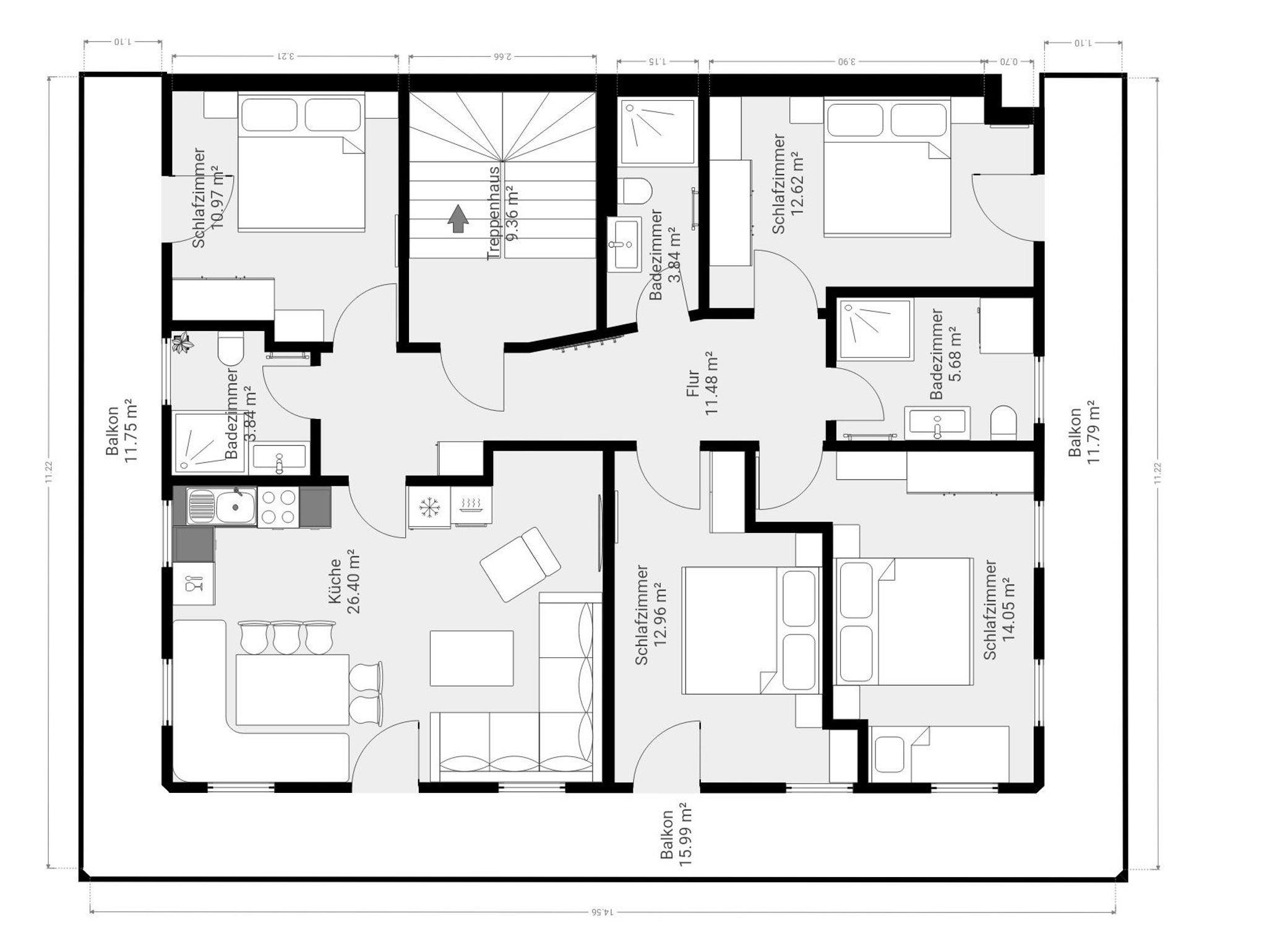 Bitte beachten Sie: Die Zimmer- u. Bäderanzahl wird im Sommer (+Nebensaison) der Personenanzahl angepasst. Zusätzliche Zimmer (max. 4) auf Anfrage.