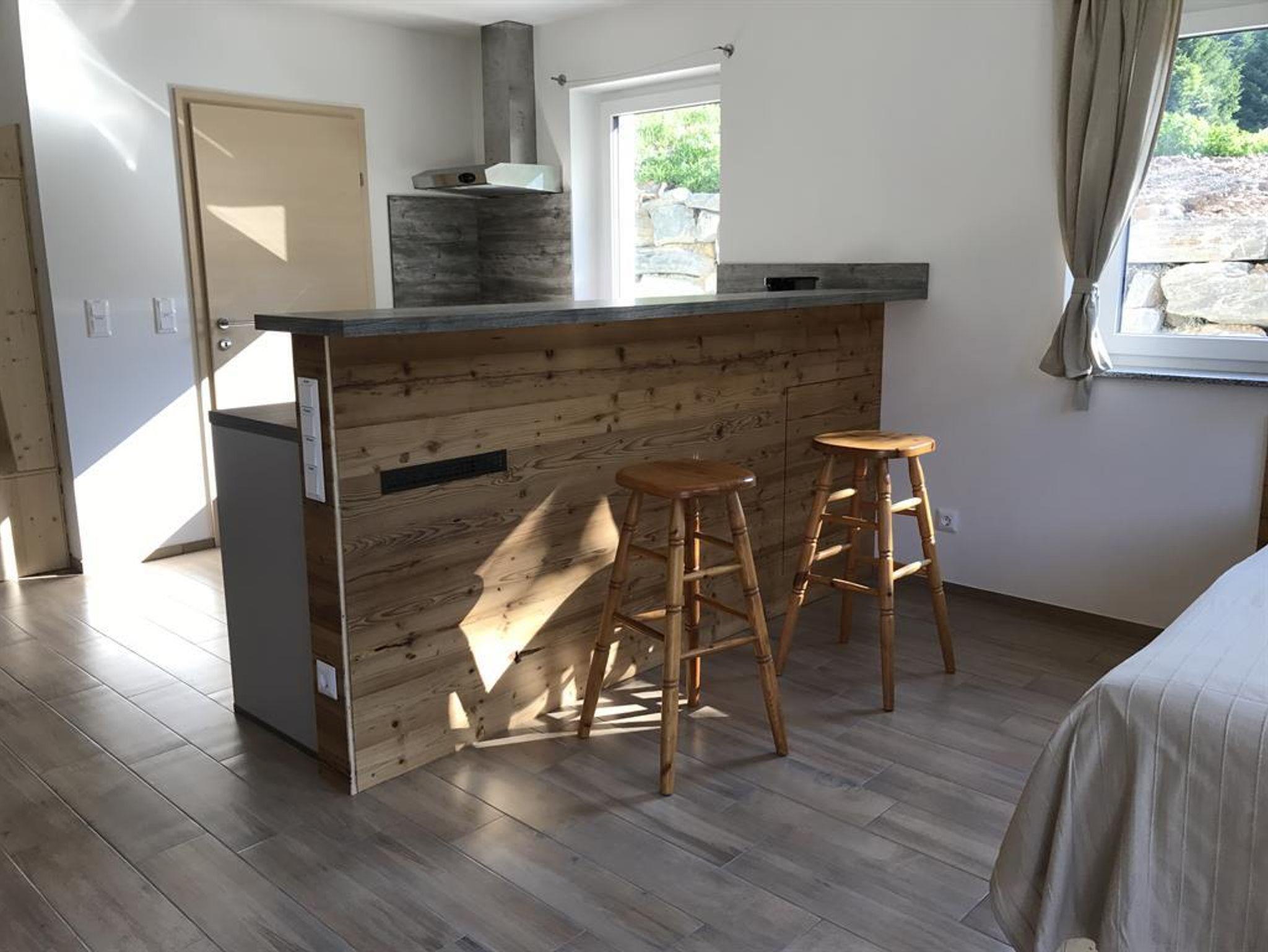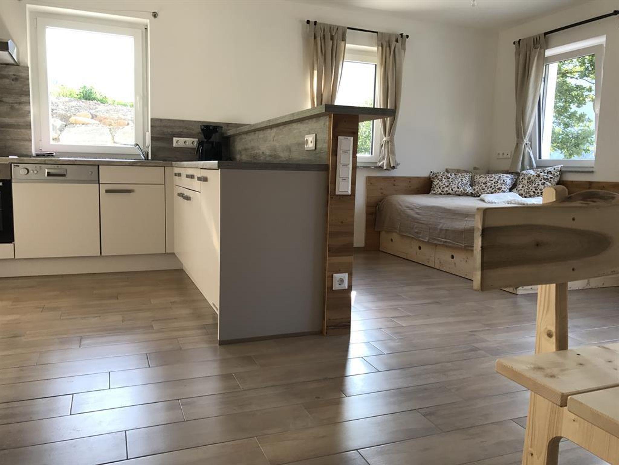 Geräumiger, gemütlicher Wohnraum mit integrierter Küche und Speiß im EG mit Sat-TV und Internet und Sonnenterrasse.